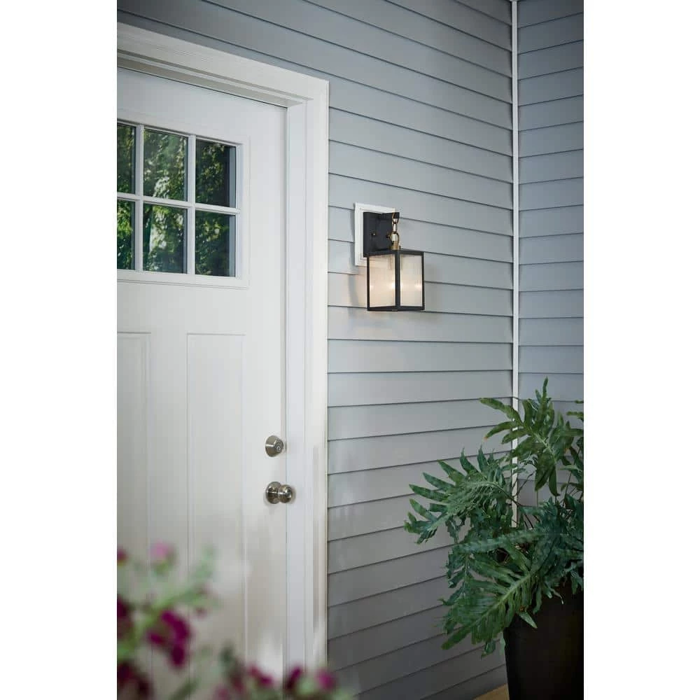 This KICHLER Lahden 16.75 in. Outdoor Wall Light with Clear Seeded Glass in Weathered Zinc adds a sleek accent to your home decor. Made from aluminum, this lamp ensures long-lasting durability and resistance to corrosion. The clear-seeded glass provides bright and even illumination while protecting the bulb from weather damage. Coated with highly durable finish, this lamp is designed to withstand sun exposure, rain and snow. The carriage-inspired lamp is ideal to light up your driveway, garage or patio.
