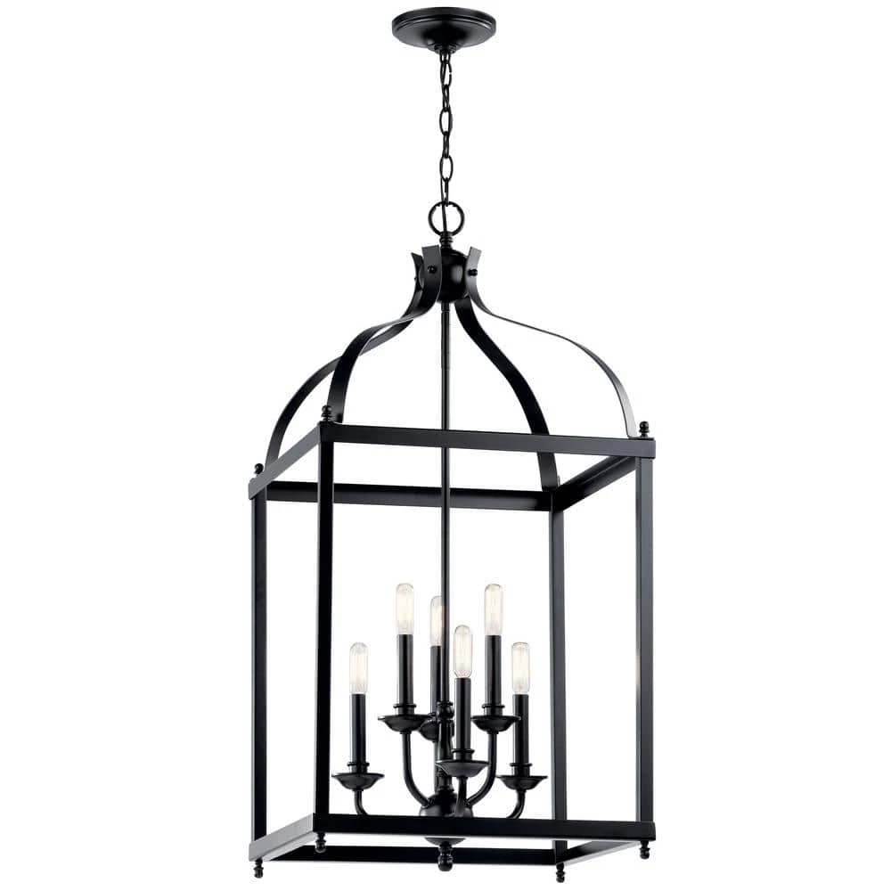 The KICHLER Larkin 36.25 in. 6-Light Black Pendant Light features a traditional, cage-like design, offering a timeless aesthetic look to your living room. The pendant light has a durable steel construction to ensure longevity and minimized maintenance. This exquisite pendant light makes for an ideal choice to illuminate your living room, dining space and more.
