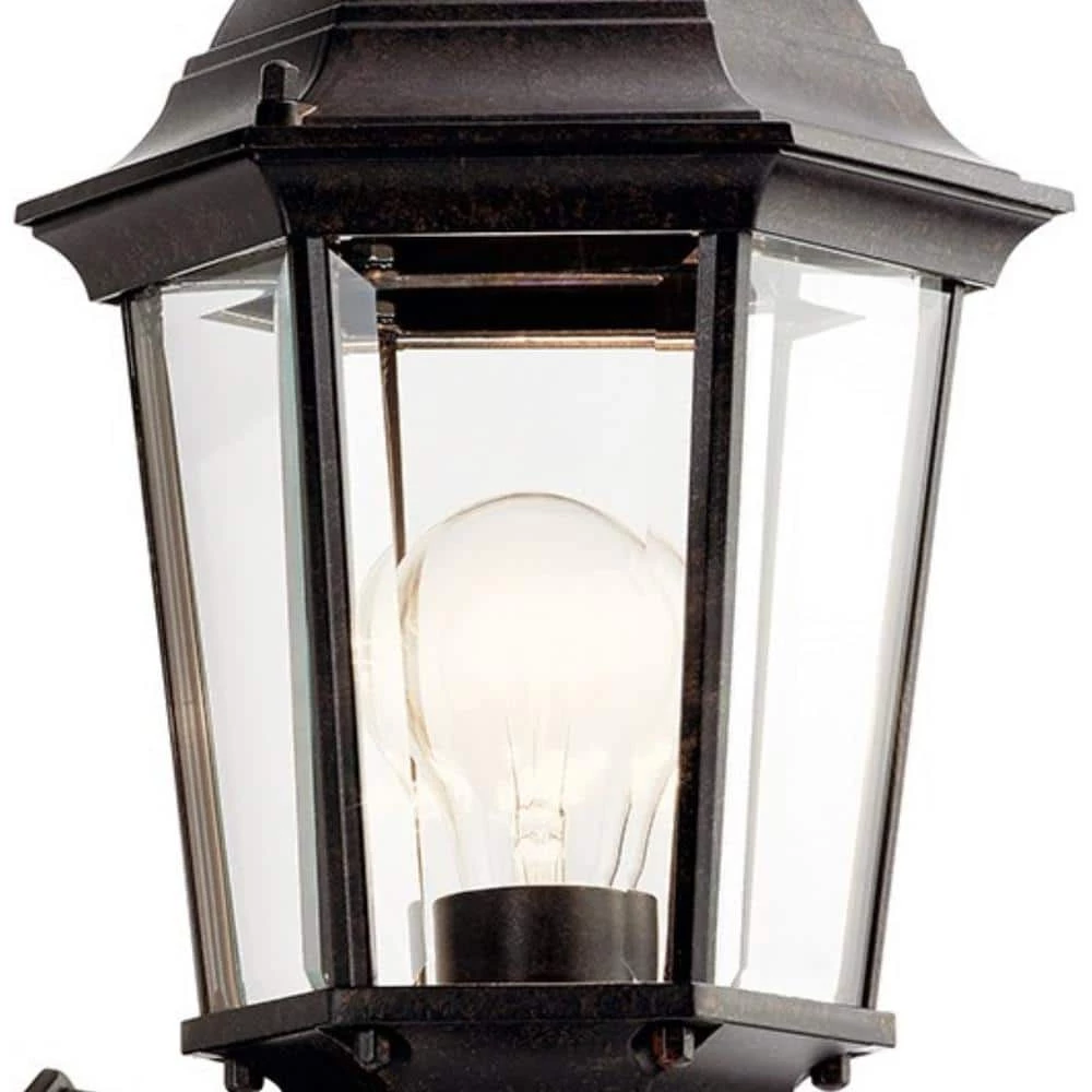 The KICHLER Madison 19.75 in. 1-Light Tannery Bronze Outdoor Wall Light adds elegant lighting to your outdoor space. With its classic colonial profile, this outdoor wall light provides an enhanced visual appeal. It features clear beveled glass panels that allow for even distribution of light. This outdoor wall light has a durable cast aluminum body and a finish that efficiently resists the elements.