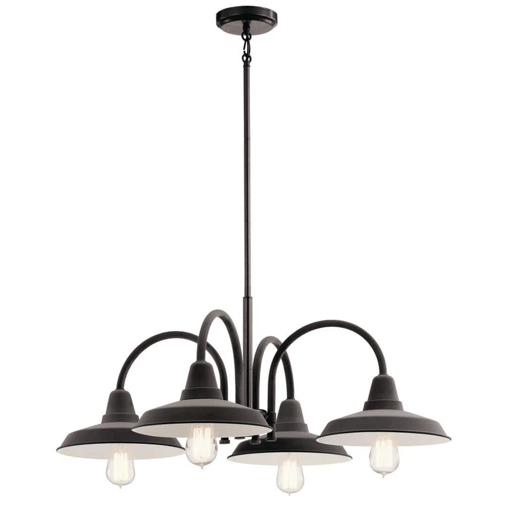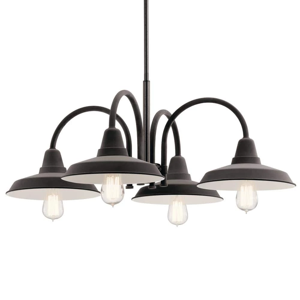 The Marrus Collection is a fresh take on a traditional industrial lighting style. With a personality all its own, this collection effortlessly adds dimension to your space. Simply put, Marrus is cool. The Marrus 4-light chandelier immediately makes a space more chic. The aluminum outer shades are Weathered Zinc. Its body and accents are Anvil Iron, giving the chandelier a refined industrial feel. White inner shades gives each a strong downlight that join together to illuminate the entire space.