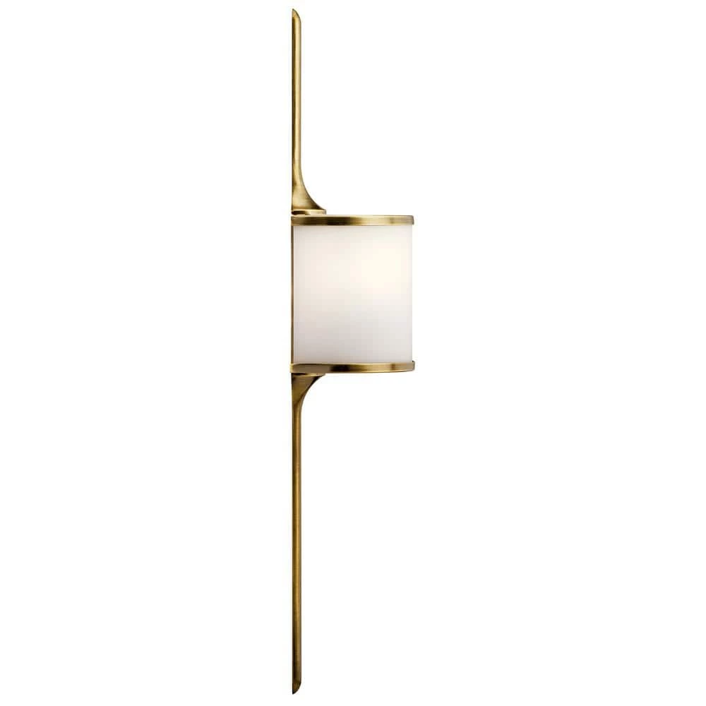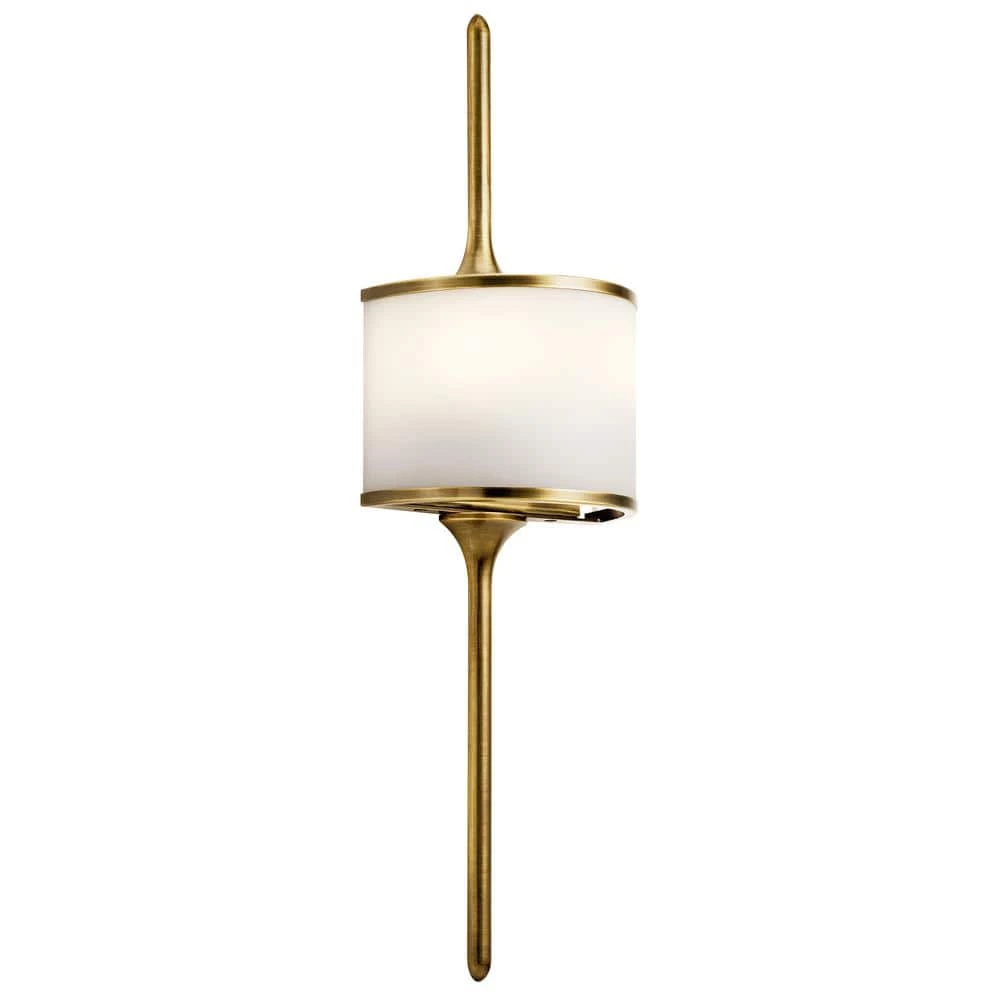 The KICHLER Mona 22 in. 2-Light Halogen Natural Brass Wall Sconce comes with satin etched white diffuser that provides soft, ambient lighting to your living space. Its sleek lines and symmetrical design, coupled with classic pewter finish, accentuate the visual appeal of any contemporary-style decor. This wall sconce has a robust steel frame that provides support and stability. This unique wall sconce from KICHLER makes for an ideal lighting solution for your living room, bedroom or more.