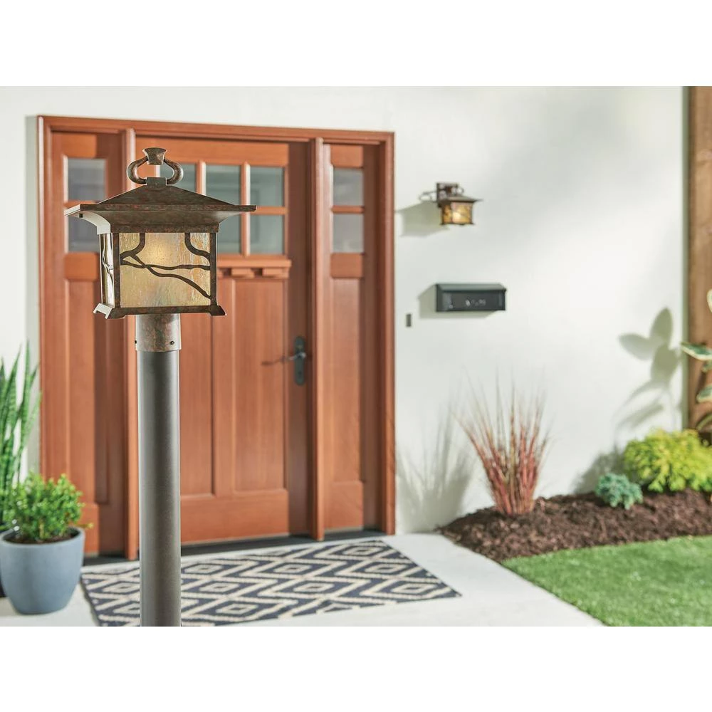 Add a radiant glow to your outdoor area with the KICHLER Morris 1-Light Distressed Copper Post Light. It features an iridescent-seeded glass that emits a warm glow to provide soothing ambient lighting. This post light is made from cast aluminum to ensure durability and resist corrosion. With its distressed copper finish, this exquisite post light is sure to add a rustic charm to your decor.
