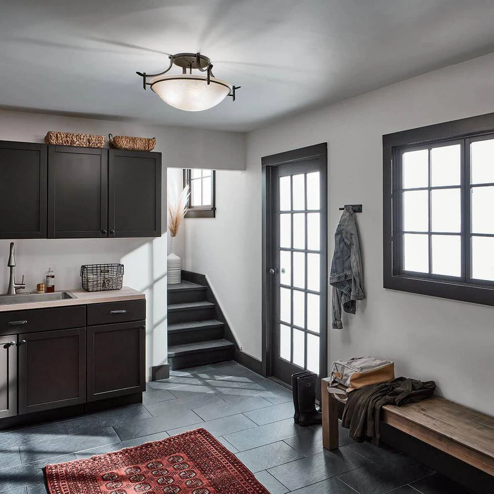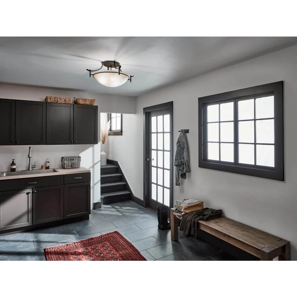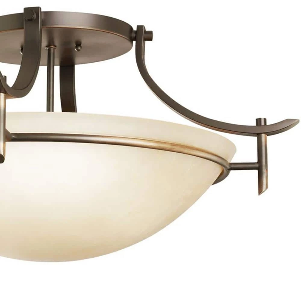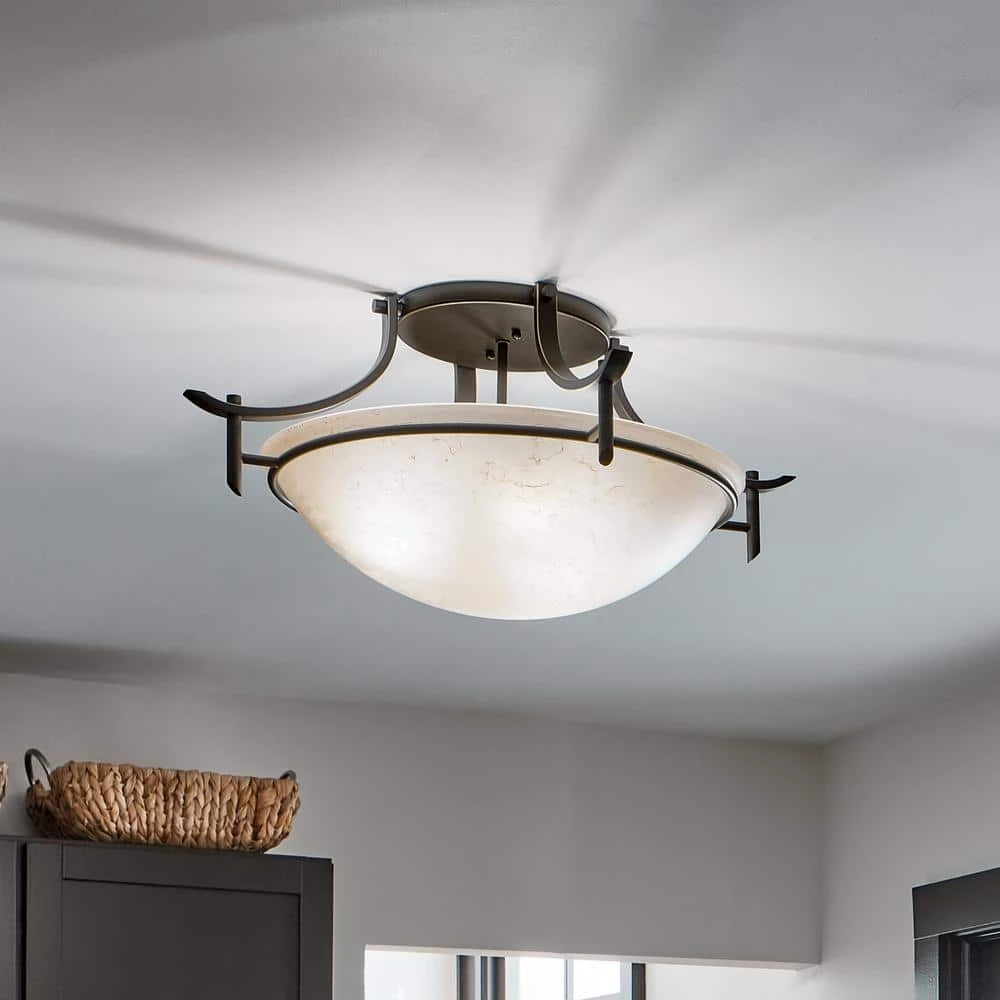 The KICHLER Olympia 3-Light Olde Bronze Semi-Flush Light is a great choice for your dining room, foyer or living room. Its unique design blends well with a contemporary-style room decor. This semi-flush light has a sunset marble white diffuser that provides soft, warm lighting. It is made from steel for enhanced strength and durability.