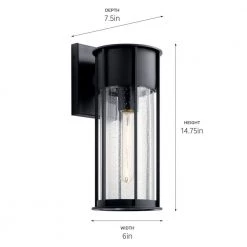 Barras 16 in. 1-Light Black Wall Sconce Outdoor Light with Clear Ribbed Glass (1-Pack) by KICHLER