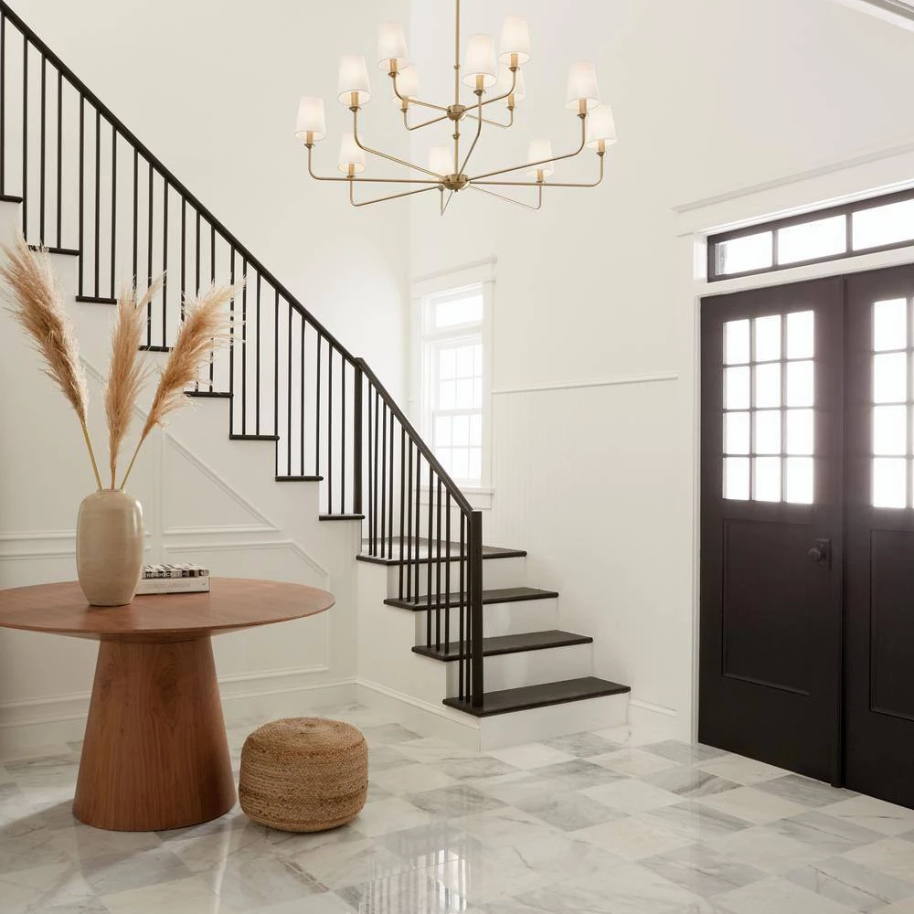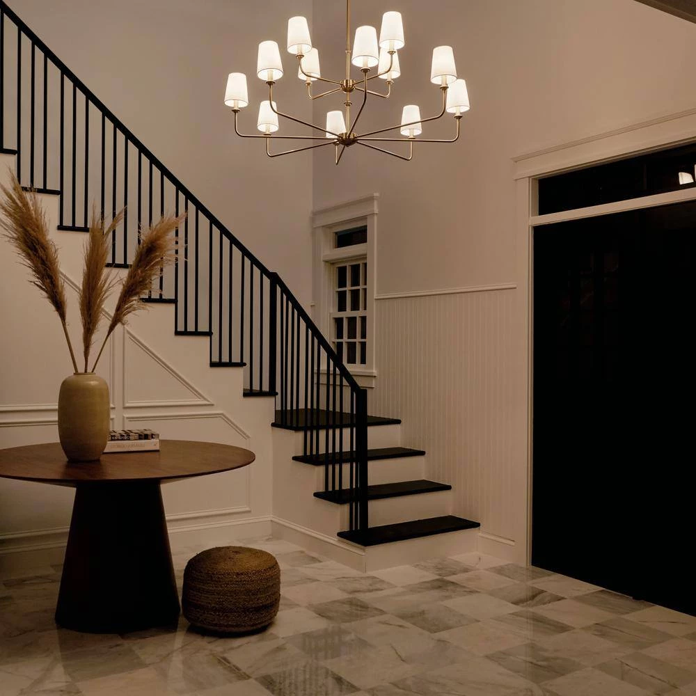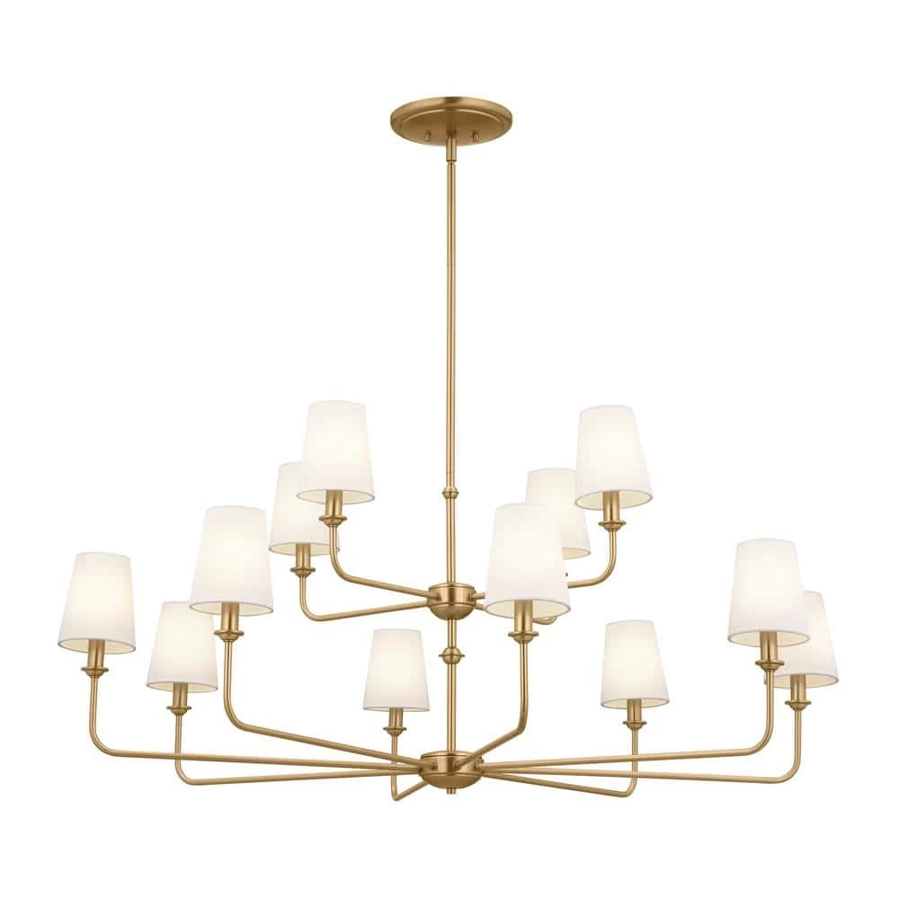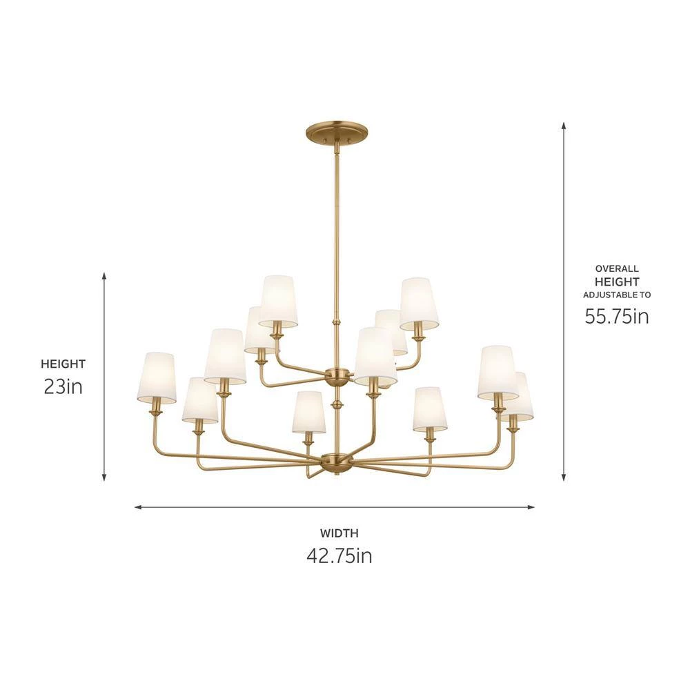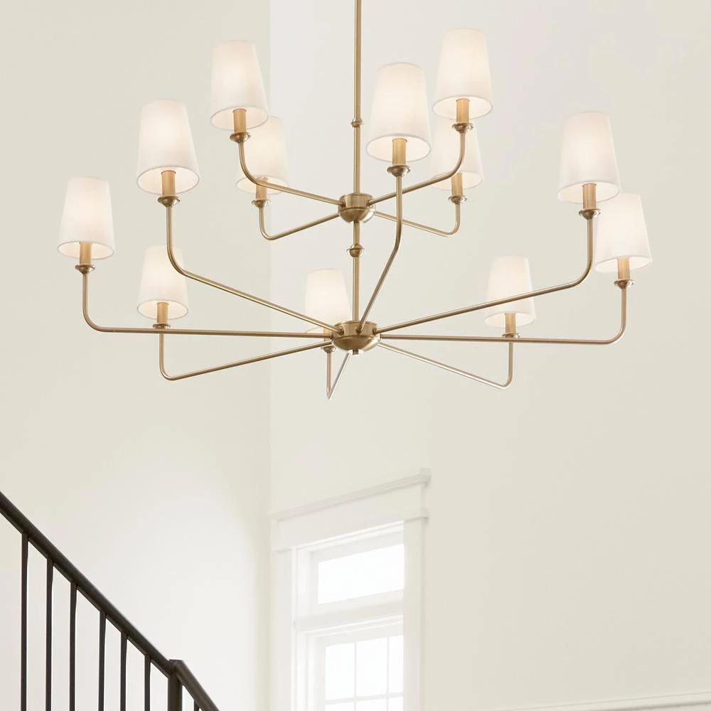 - What’s In the Box: (1) Canopy, (2) 6 in. Stems, (2) 12 in. Stems, (1) Fixture, (12) Fabric Shades, (12) Candle Sleeves, (1) 90° Swivel, and (1) Mounting Hardware, Bulbs not included