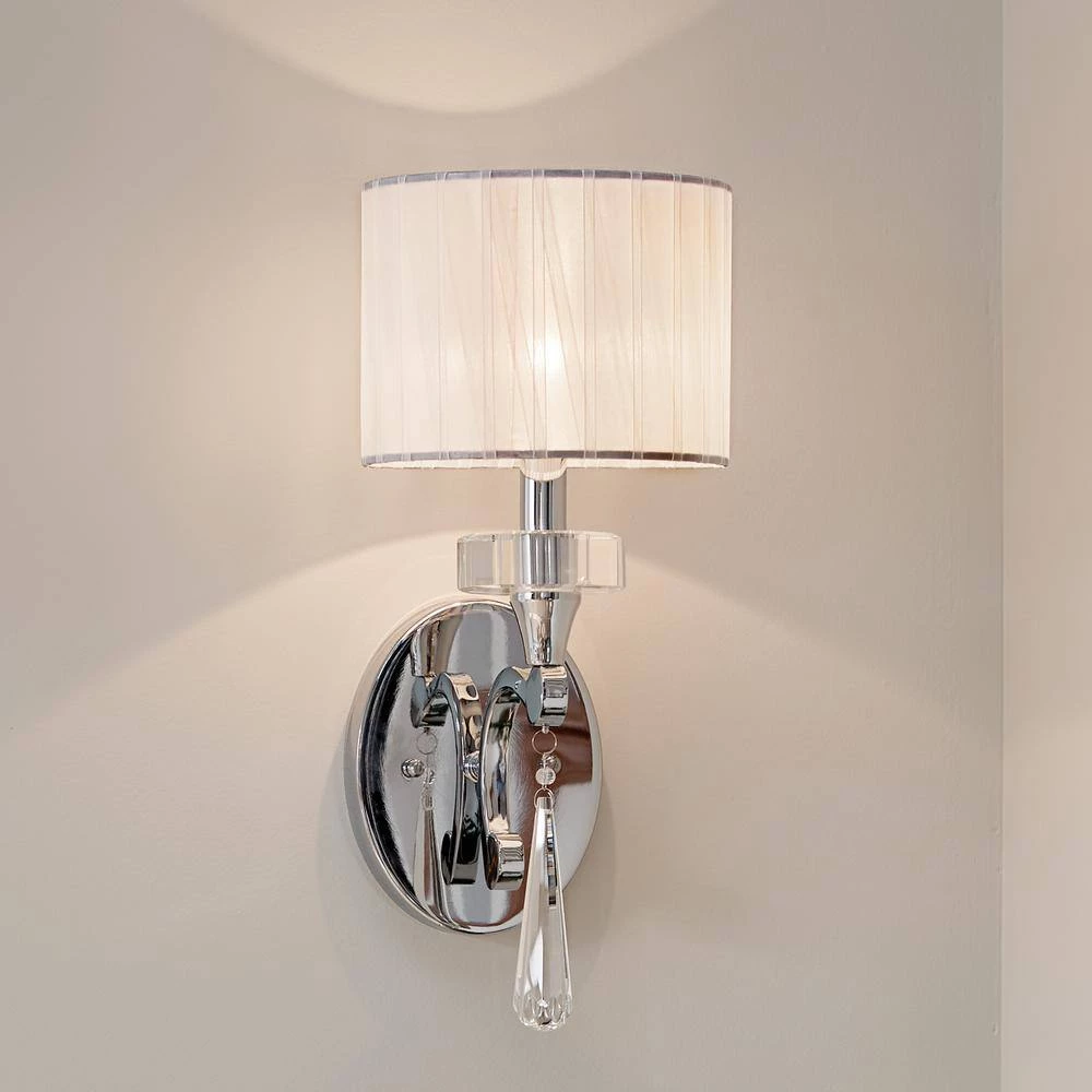 The KICHLER Parker Point 15.5 in. 1-Light Chrome Wall Sconce adds a sleek accent to your home decor. It features a polished chrome center column and arm detailing with crystal touches for an elegant visual appeal. The white organza fabric inner shade of this wall sconce lends a soft, diffused glow to your living room, bedroom and more.