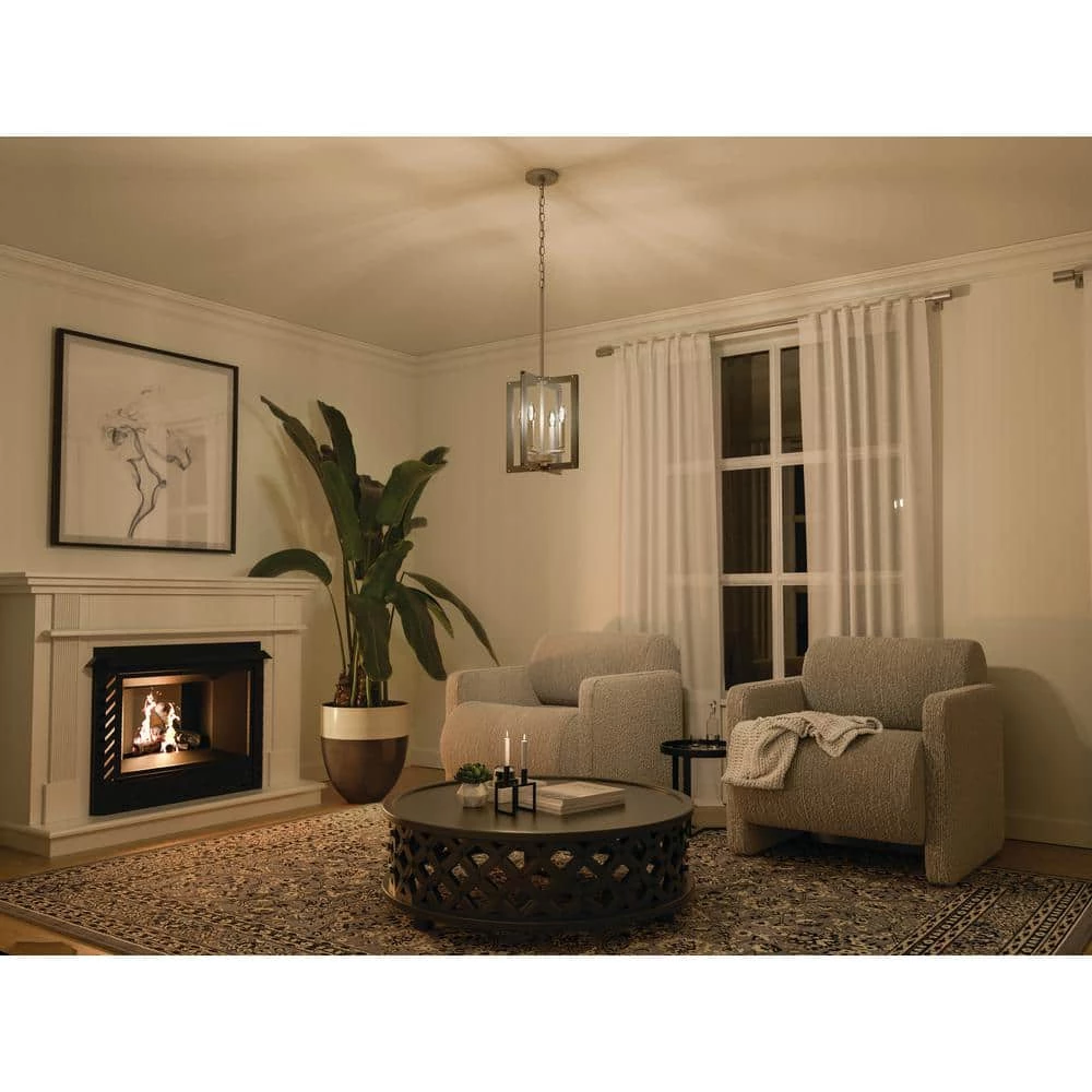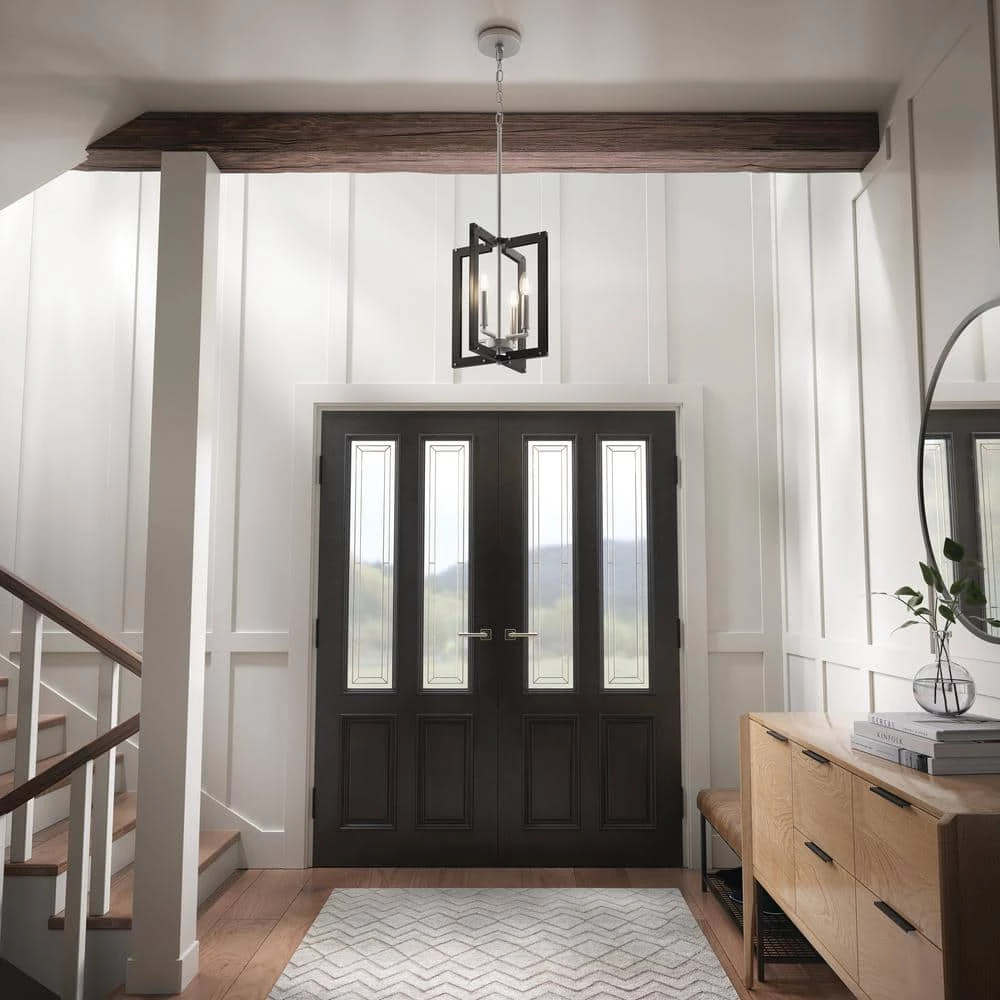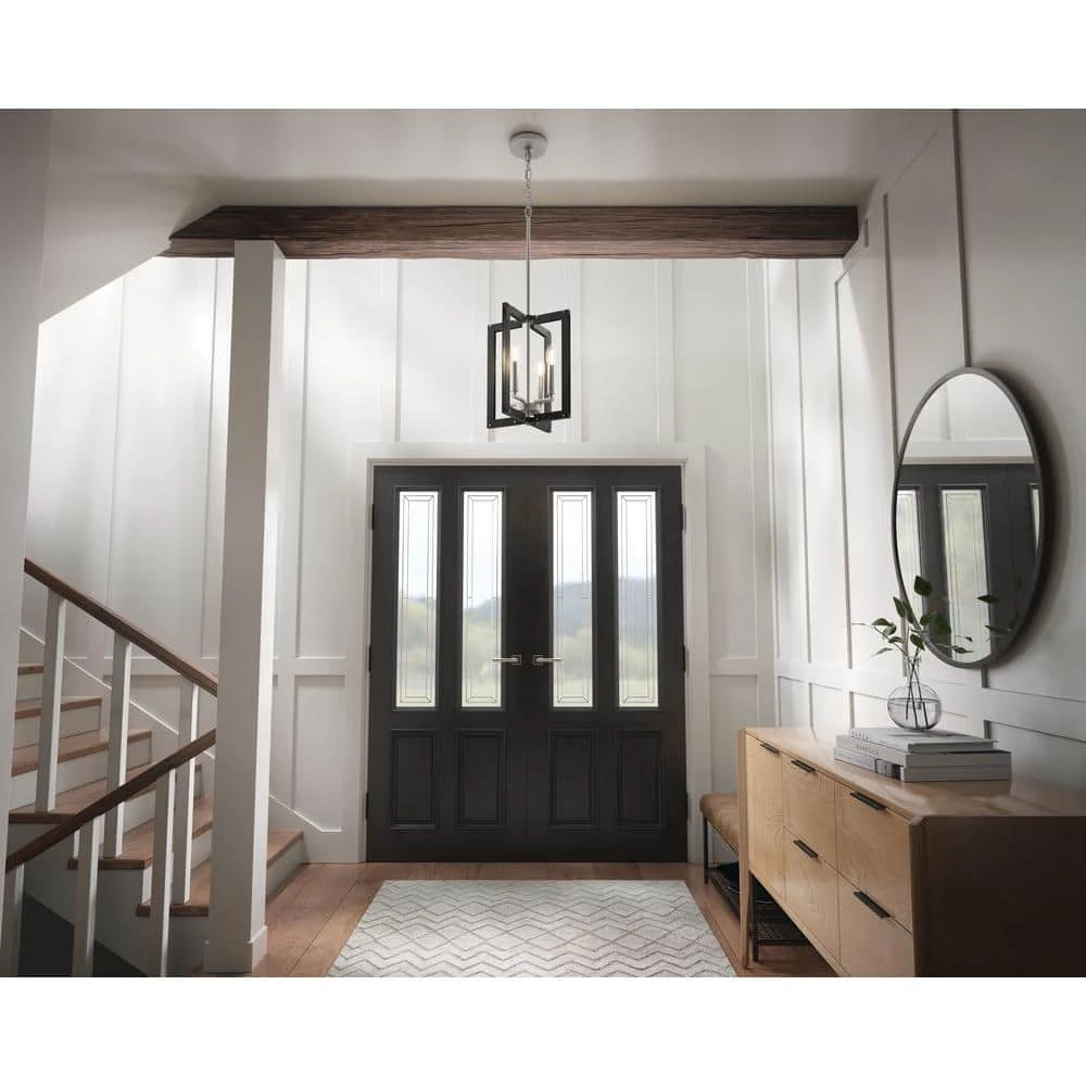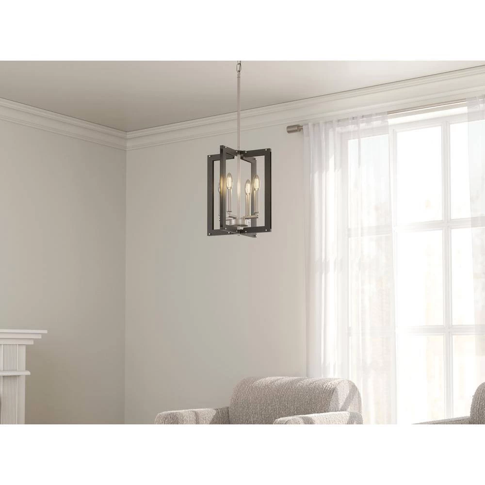 Air breezes through and around this Pendroy collection 12 in. 4-light foyer pendant for an elegantly artistic impression. Its mixed Black and Brushed Nickel finishes create a unique, refined and timeless pendant that beautifully expresses your individuality. Mixed finishes add to the beauty of this fixture.