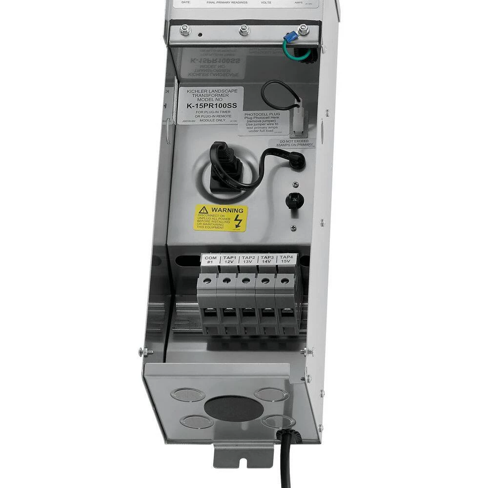 Like all Kichler Landscape Lighting transformers, the 100W Pro Series Transformer is compatible with our 12/2 wire and a wide range of Kichler Landscape Lighting fixtures. This model comes with a 10-year warranty and works with many optional accessories. Reduces standard 120V line voltage to 12V low voltage required for landscape lighting, while providing the power you need for up to 100 Watt installations.