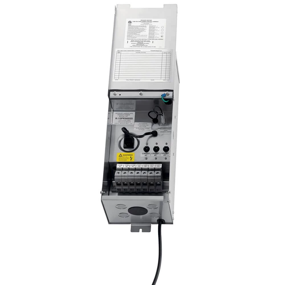 Like all Kichler Landscape Lighting transformers, the 900W Pro Series Transformer is compatible with our 12/2 wire and a wide range of Kichler Landscape Lighting fixtures. This model comes with a 10-year warranty and works with many optional accessories. Reduces standard 120V line voltage to 12V low voltage required for landscape lighting, while providing the power you need for up to 900 Watt installations.