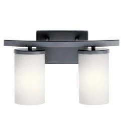 Crosby 15 in. 2-Light Black Bathroom Vanity Light with Etched Glass Shade by KICHLER