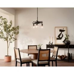 Eastmont 3-Light Black Vintage Industrial Dining Room Chandelier with Clear Glass by KICHLER