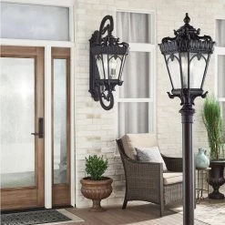 Tournai 2-Light Textured Black Outdoor Light Wall Sconce with Clear Seeded Glass (1-Pack) by KICHLER
