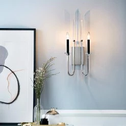 Kadas 2-Light Polished Nickel Bathroom Indoor Wall Sconce with Clear Crystal Glass by KICHLER