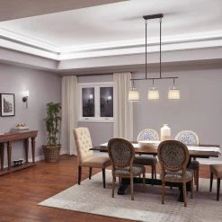 Heddle 3-Light Textured Black Vintage Dining Room Chandelier with Fabric Shade by KICHLER
