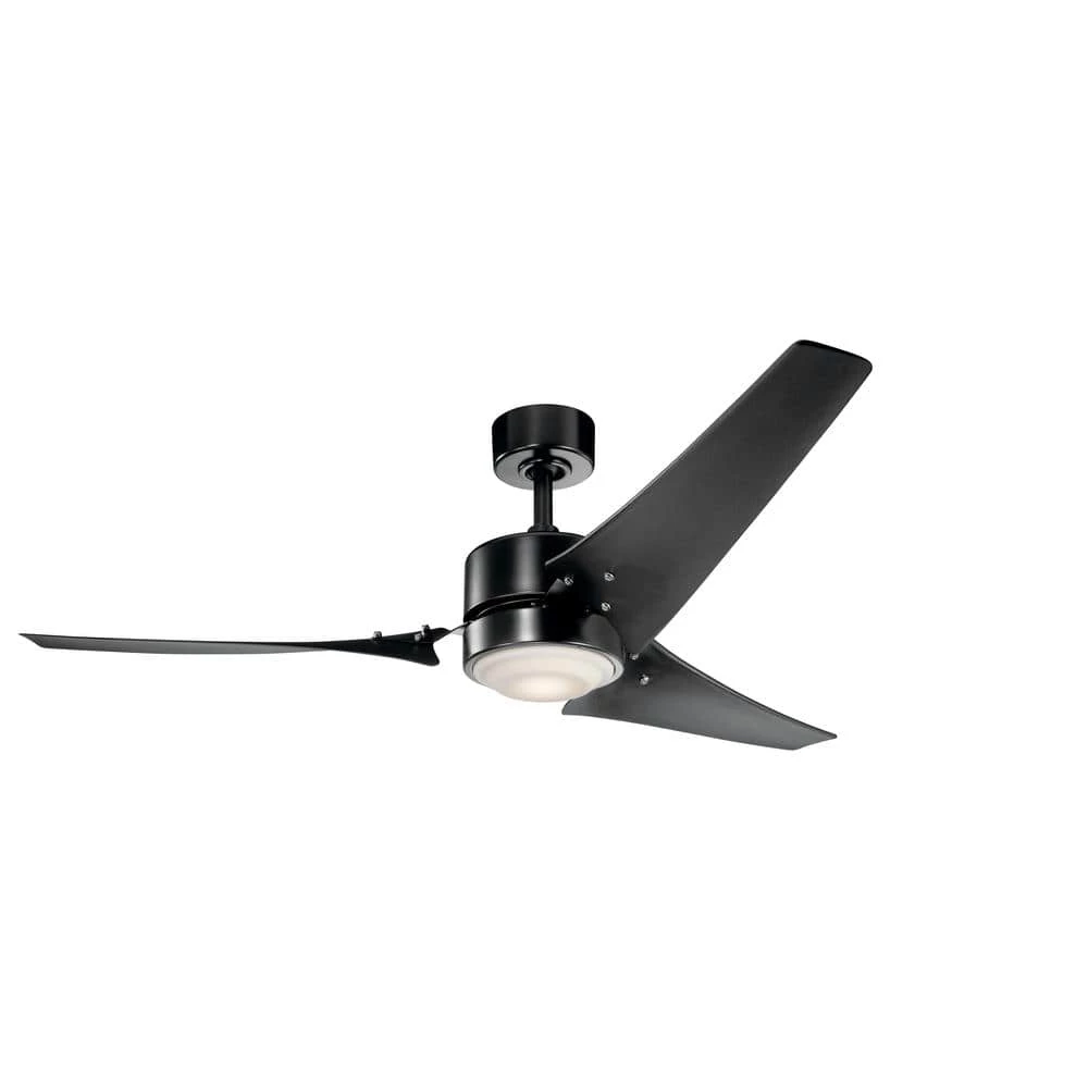 The KICHLER Rana LED 60 in. Satin Black Fan with Etched Cased Opal Glass saves you the trouble of installing additional light fixtures for optimal lighting. Its etched cased opal glass shade disperses light uniformly inside the room. This KICHLER ceiling fan provides great air circulation for the entire room. It flaunts a wind turbine design for a modern visual appeal.