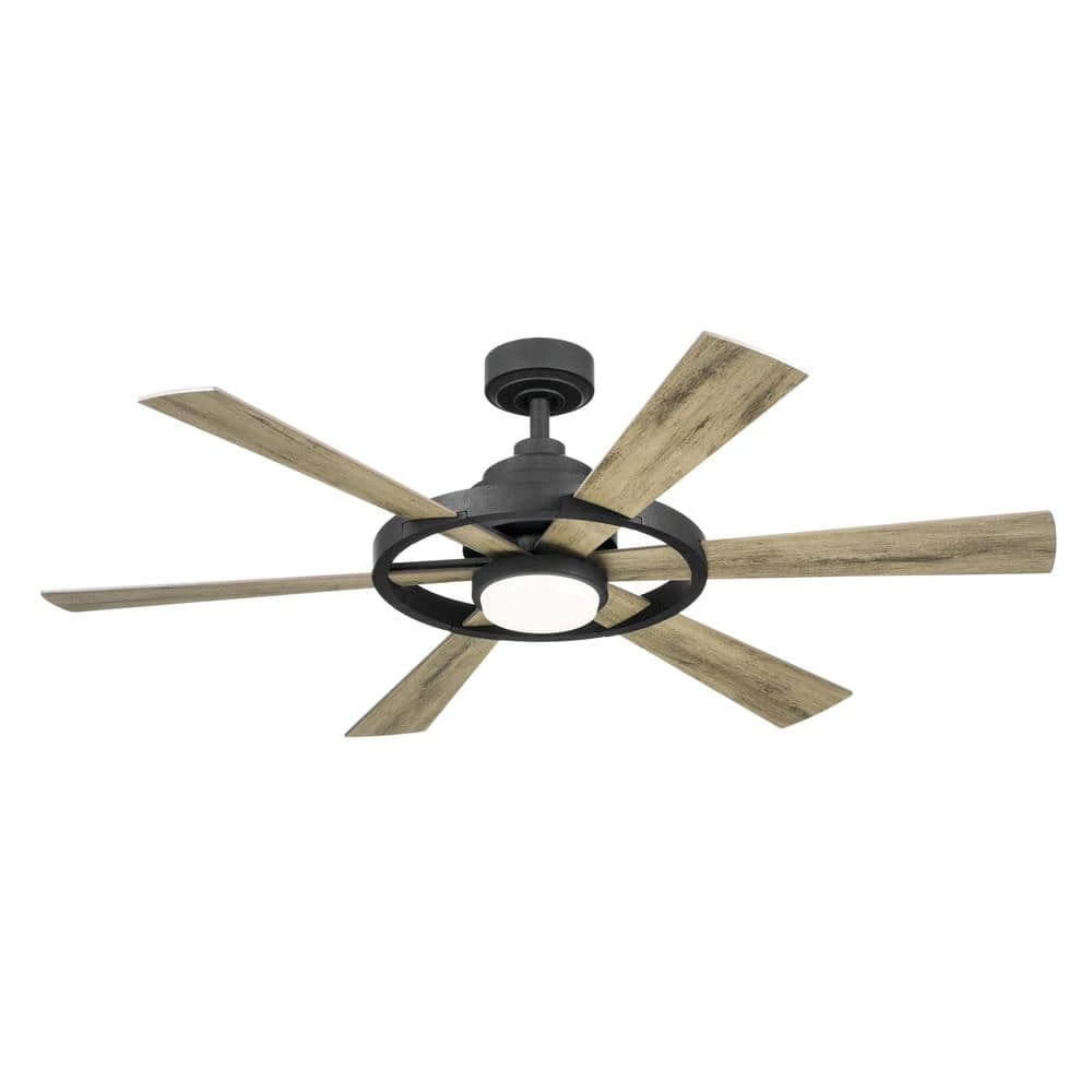 Create the perfect lighting for your space with this Range 52 in. Integrated LED Indoor Distressed Black Down Rod Mount Ceiling Fan with Light and Remote. Use the remote control to adjust the fan speed and lighting. You can use this fan in your bedroom, living room or other spaces around your home.