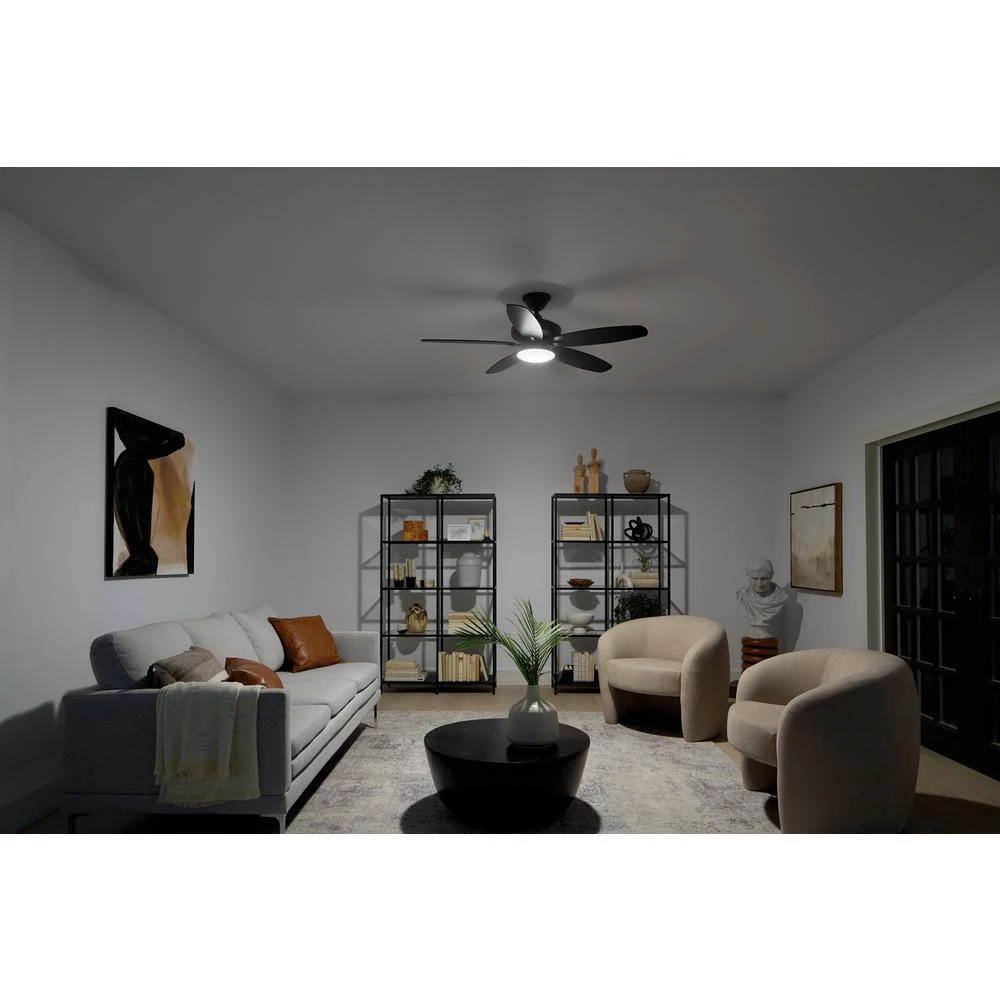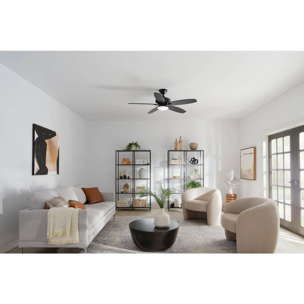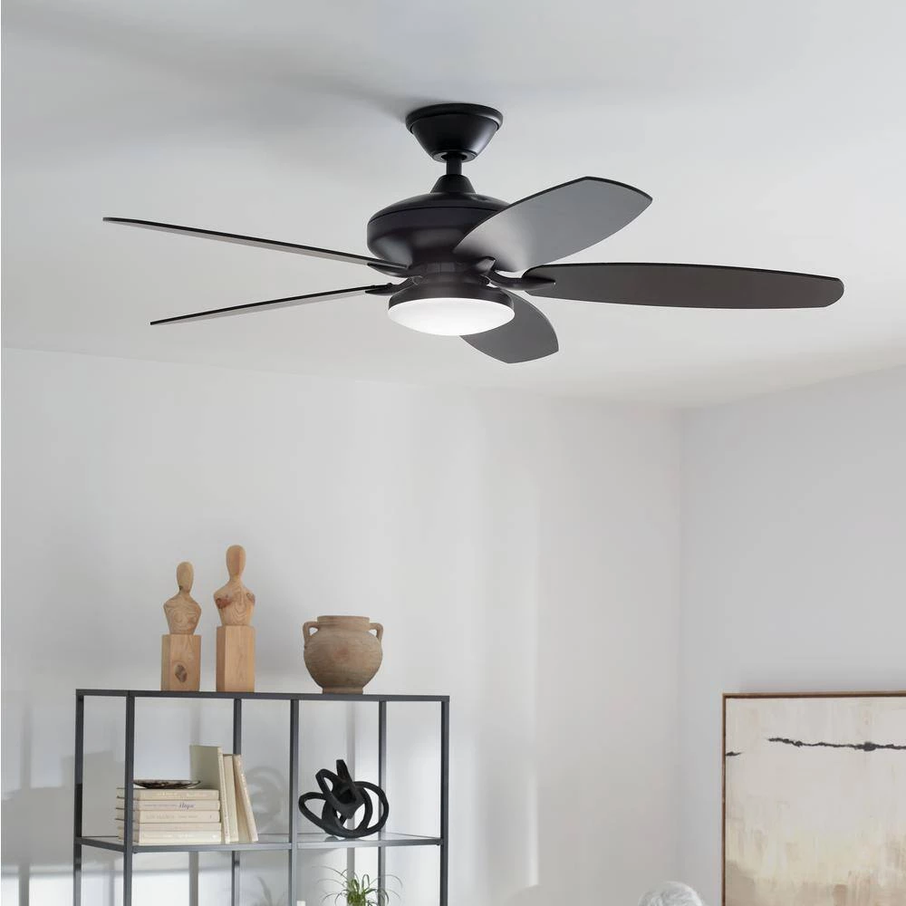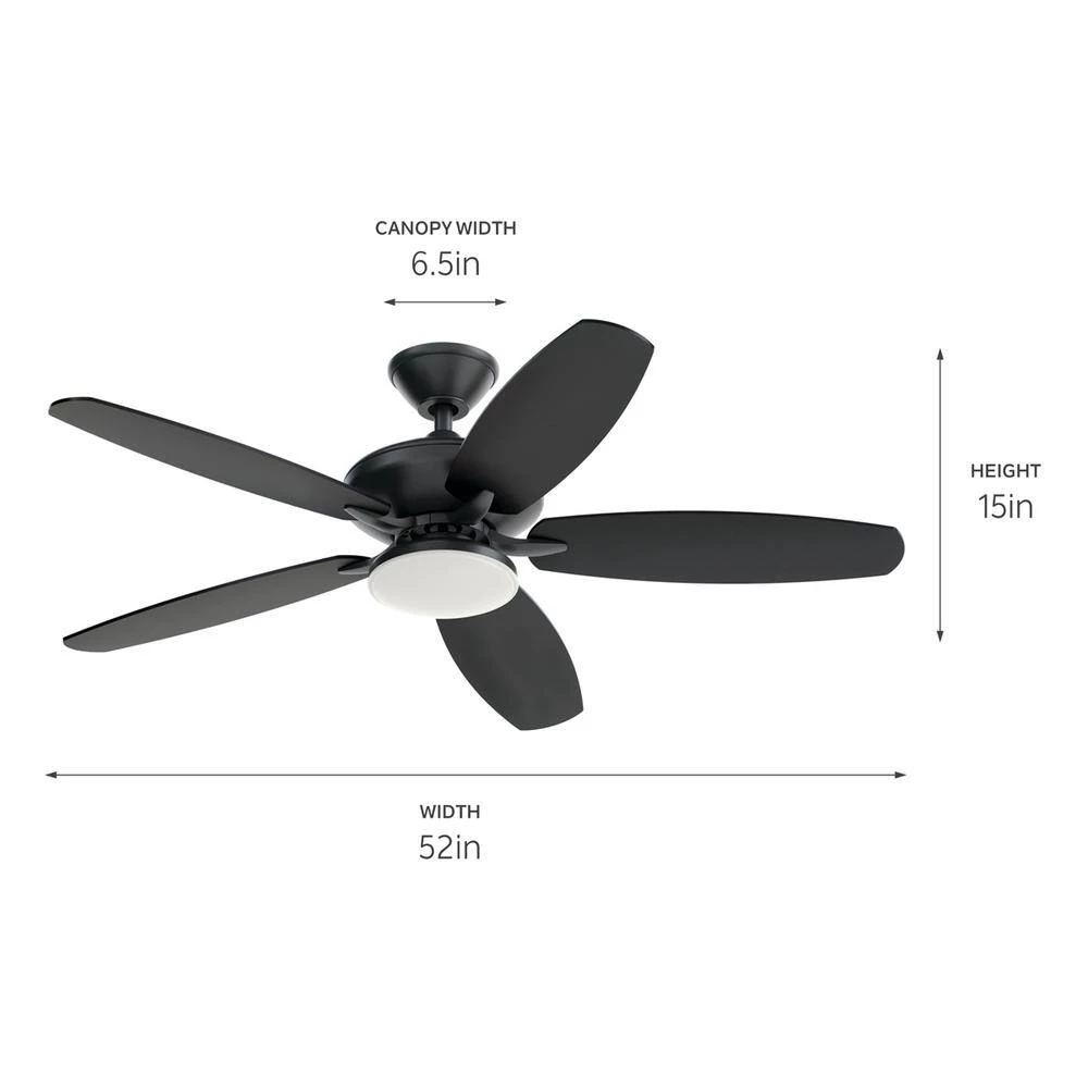 The Renew Designer 52 in. LED Ceiling Fan in a Satin Black finish easily integrates across multiple applications and decor with its soft, modern design aesthetics. Inspired by the clean and simple design of a Nordic Vase it features a clean blade style, a larger than standard motor with no visible vents in the housing and an LED light kit. Equipped with a switch on the motor housing to give you the ability to change the fan rotation direction to suit your season needs.