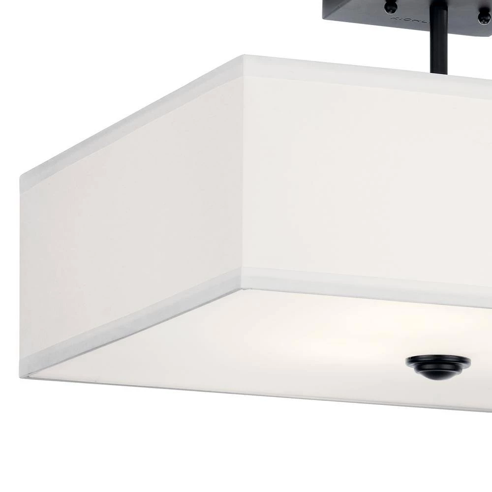 - The Shailene 3 light square semi flush with Black finish, satin etched white diffuser, and white microfiber shade measures 18 inch in width and 11.25 inch in body height