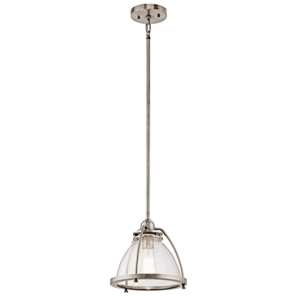 The KICHLER Silberne 10 in. 1-Light Classic Pewter Pendant Light serves as an ideal downlight for your living room, bedroom and dining room. Featuring a unique design, this light blends well with coastal-style decors. The clear seeded glass diffuser provides bright illumination for your living space. This pendant light from KICHLER adds a rustic touch to your home decor.
