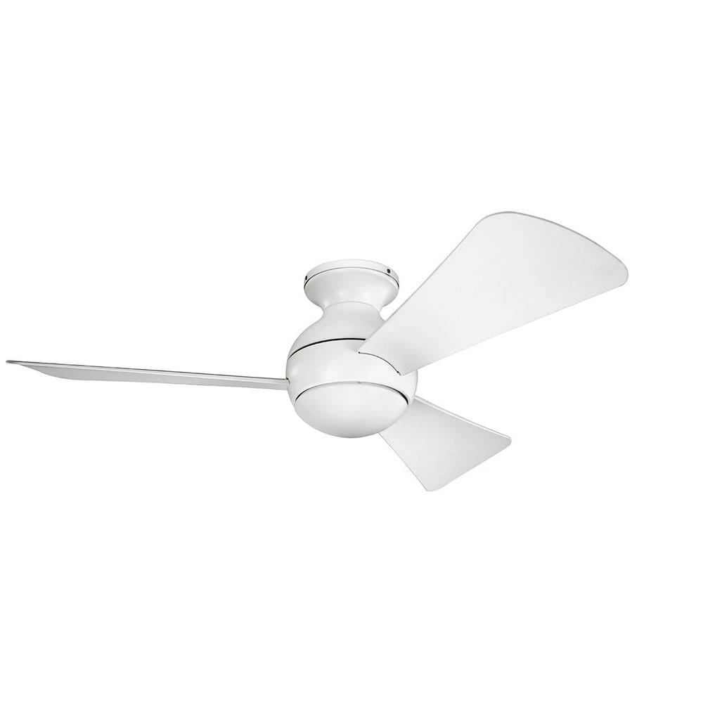 The KICHLER Sola LED 44 in. 3-Blade Fan has a beautiful matte white finish that is sure to elevate your living space. It features a globe inspired motor housing shape and etched cased opal glass that further enhance its visual appeal. This ceiling fan has an integrated LED bulb that not only consumes less energy but also provides a soft, warm glow to illuminate your home or office. Made from sturdy steel, this fan is durable and ensures years of worry-free use. It is ETL listed for safe use in wet locations.