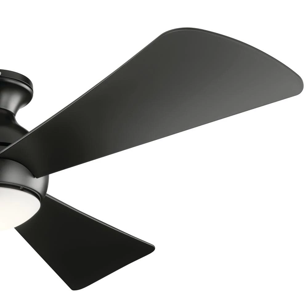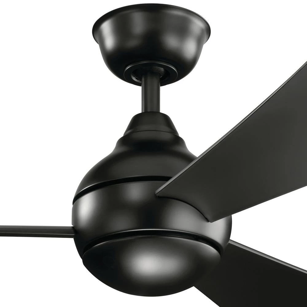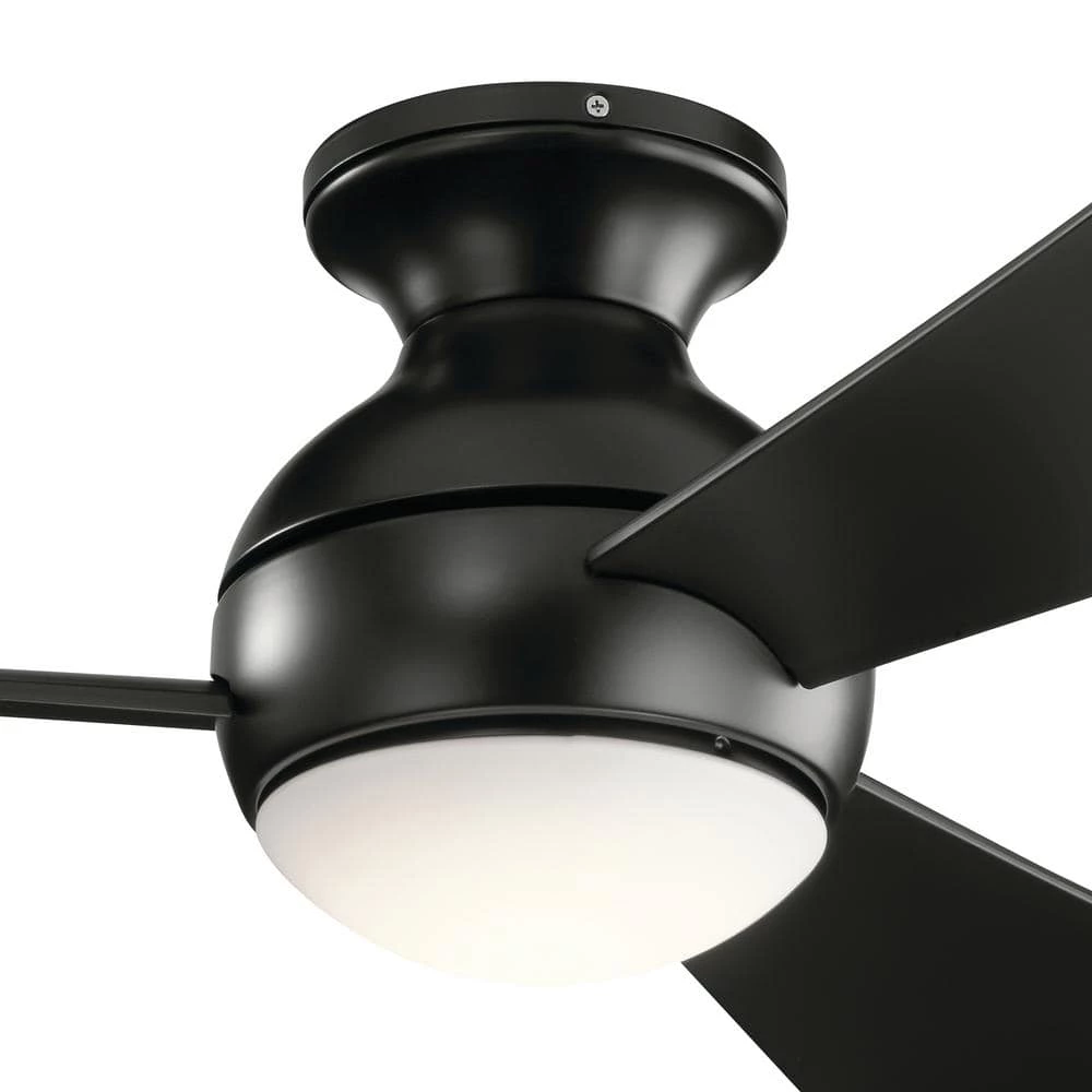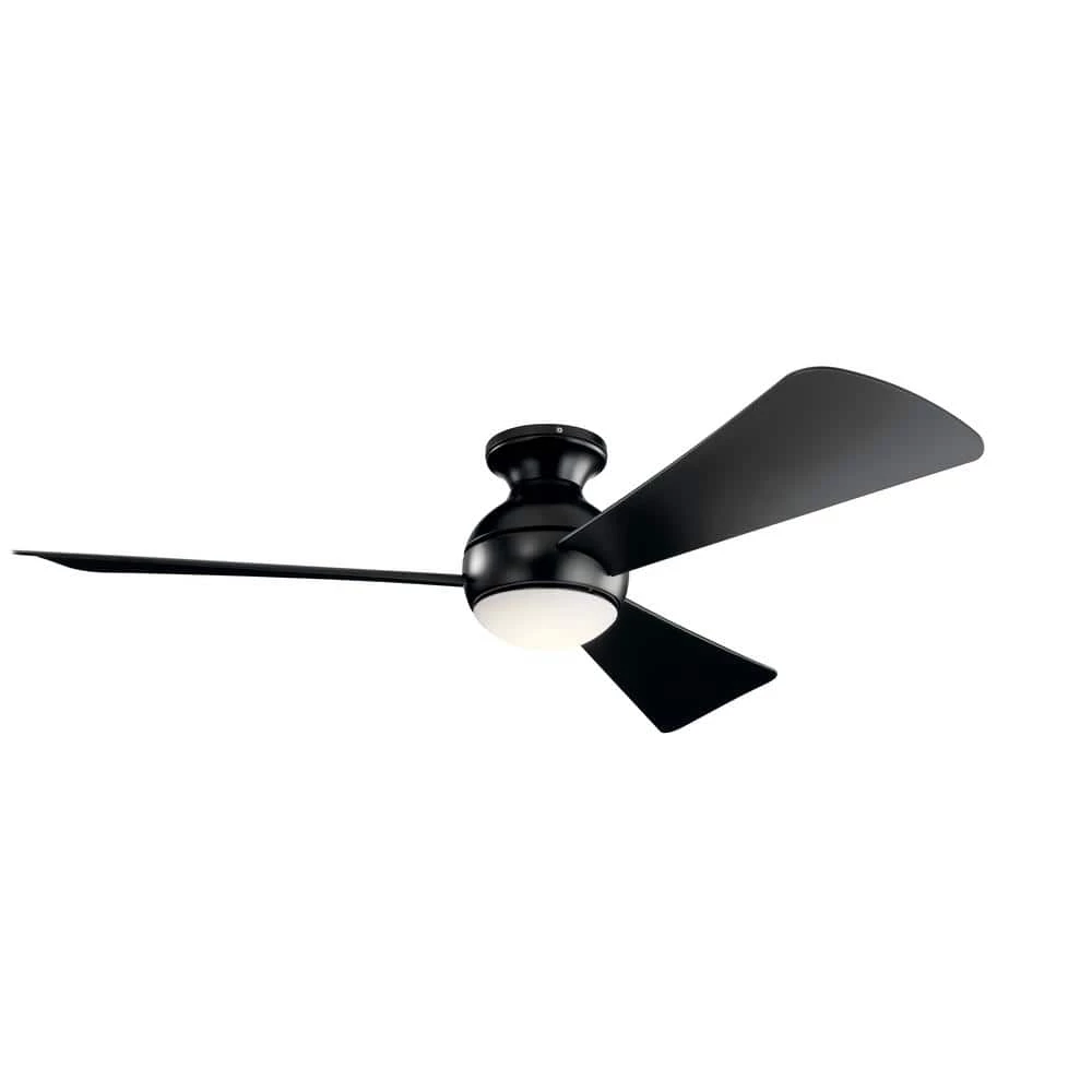 The KICHLER Sola LED 54 in. Satin Black 3-Blade Fan makes for an ideal choice for your living space. It features a globe inspired motor housing shape and etched cased opal glass that further enhance its visual appeal. This ceiling fan has an integrated LED bulb that not only consumes less energy but also provides a soft, warm glow to illuminate your home or office. Made from sturdy steel, this fan is durable and ensures years of worry-free use. It is ETL Listed for safe use in wet locations.