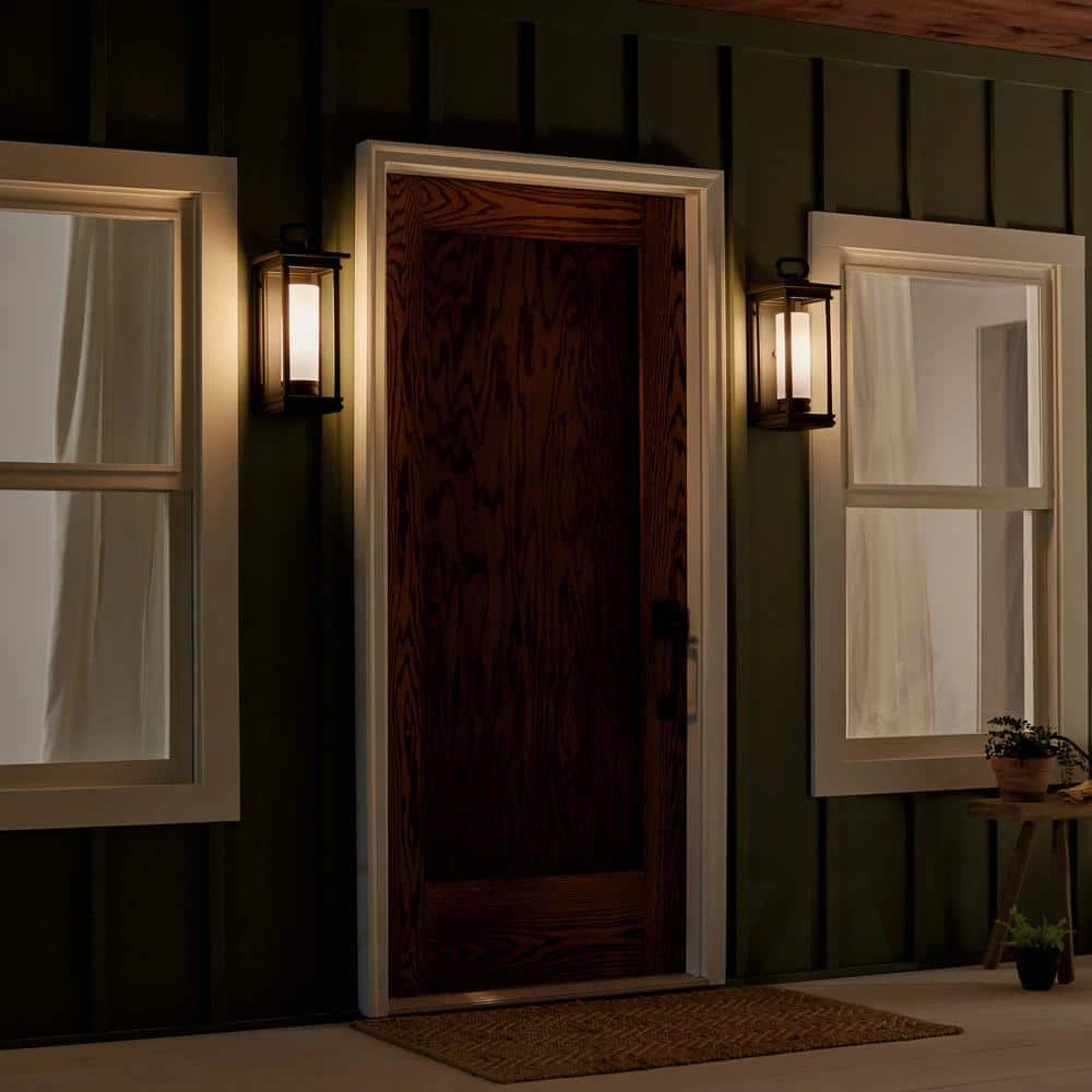 The Kichler South Hope 17.75 in. 1-Light Rubbed Bronze Outdoor Wall Light imparts transitional style to your space. Featuring satin etched cased opal glass diffuser, this wall light provides a soft, warm glow for optimum illumination. Its high-quality aluminum construction ensures durability and extended, worry-free use. This wall light is an excellent addition to your entryway, garage door, patio, porch, and more.