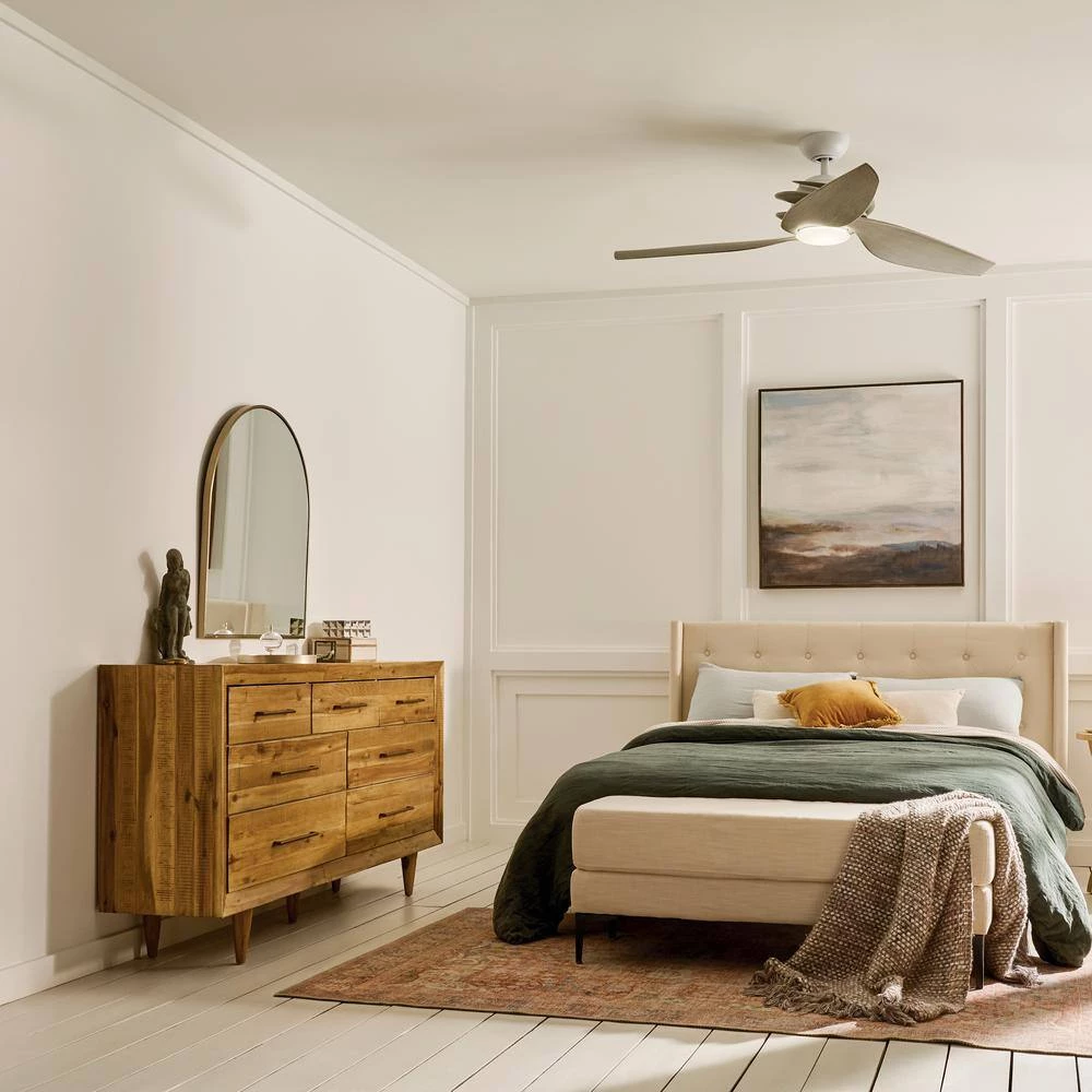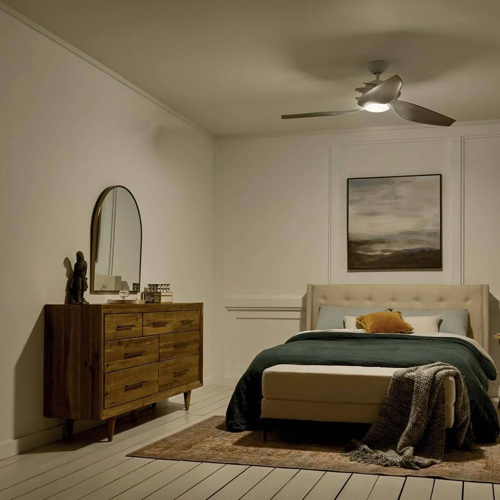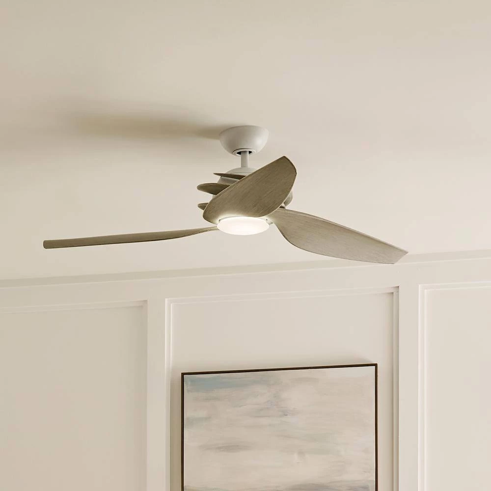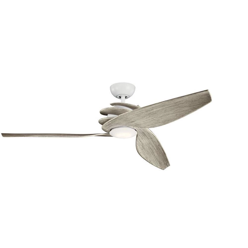 The KICHLER Spyra LED 62 in. Matte White Fan with Etched Cased Opal Glass adds a touch of style to your space. It features etched cased opal glass shade for soft ambient lighting. The remote wall control and dimmable option allow you to control the brightness of your room. This ceiling fan is equipped with 6-speed modes that allow for optimum air circulation and efficient cooling. with its attractive matte white finish, this ceiling fan adds a touch of rustic charm to your decor.
