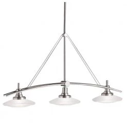 Add a touch of contemporary vibe to your space with the KICHLER Structures 37 in. 3-Light Brushed Nickel Halogen Linear Chandelier. It features sophisticated details, satin etched glass shades and a beautiful brushed nickel finish for an enhanced visual appeal. The halogen bulbs provide bright, even illumination to light up your decor. This chandelier from KICHLER makes for an ideal choice to light up your dining room, living room, bedroom and more.