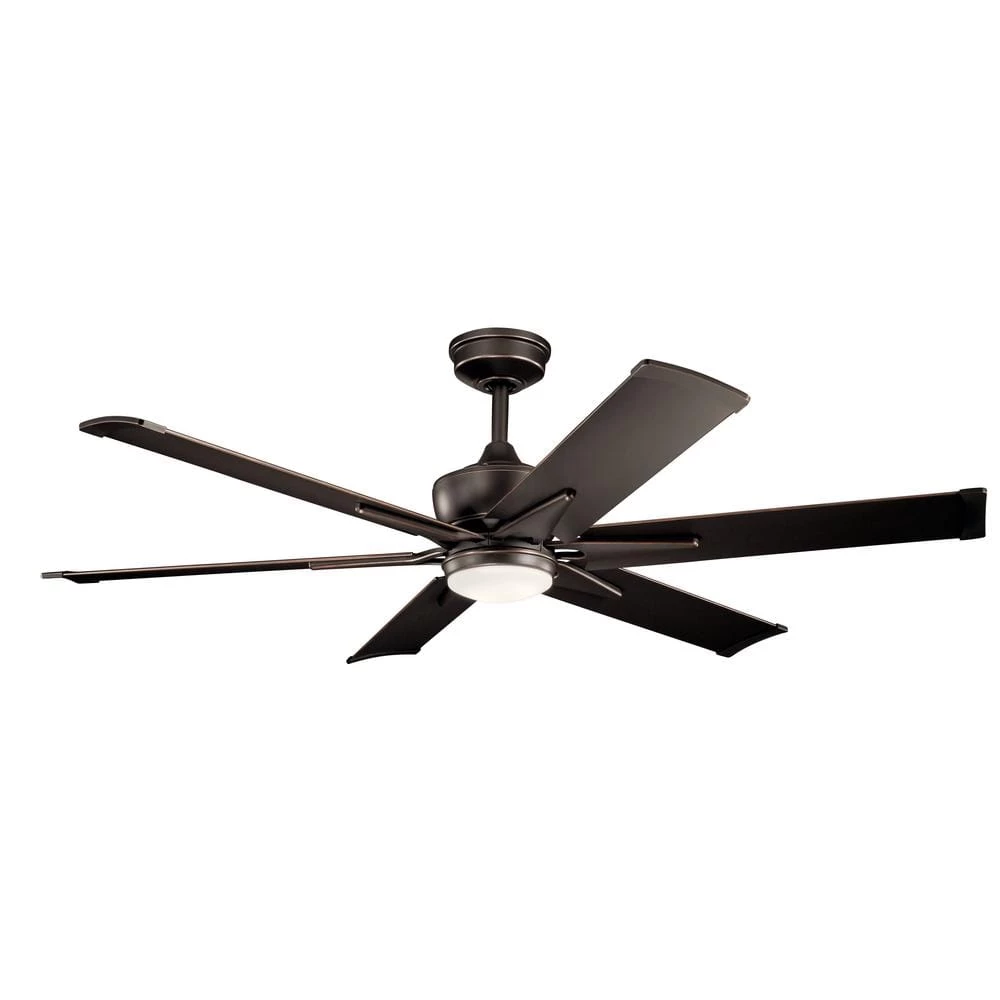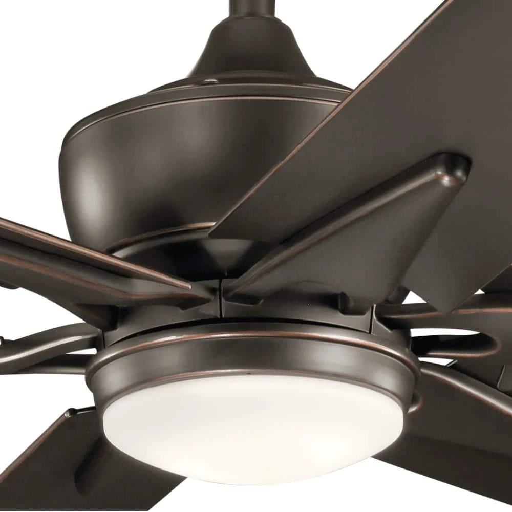 The Kichler Szeplo II 60 in. Fan in an olde bronze finish adds an elegant visual appeal to your home decor. The fan has sturdy aluminum blades for long, uninterrupted usage. The hub of the fan features an etched-glass diffuser for soft, dimmable illumination using a removable LED bulb. This fan is compliant with Title-20 regulations for efficient operation and can be safely used in damp/humid areas.