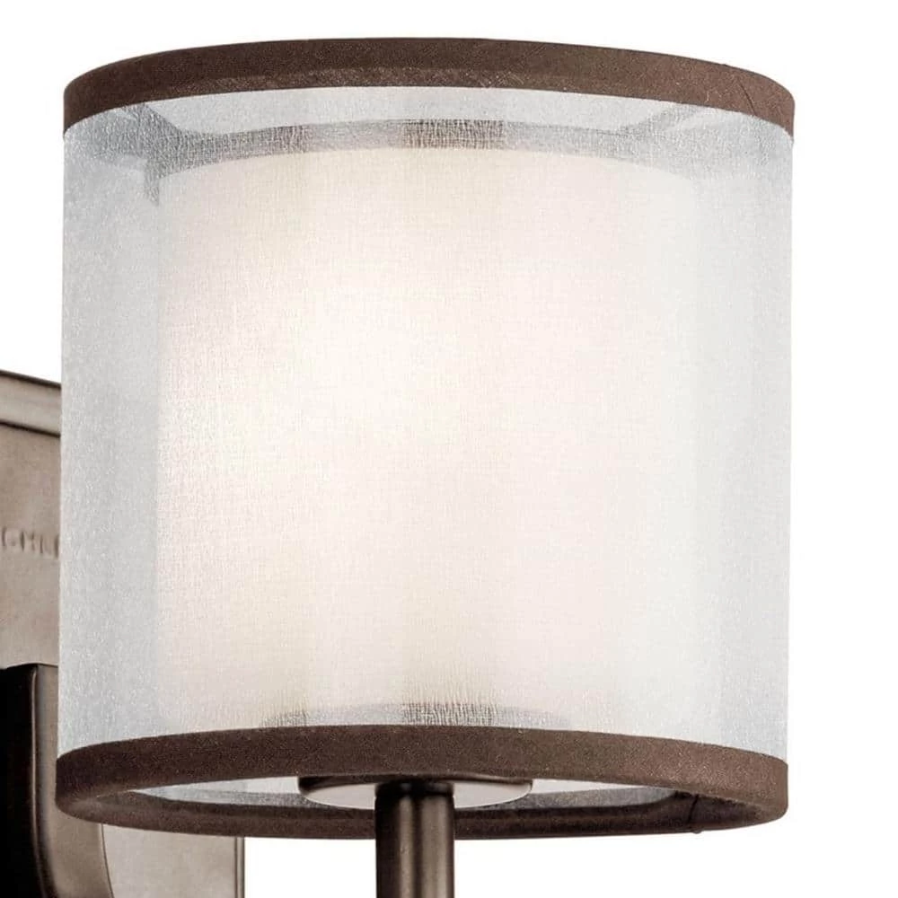 The KICHLER Tallie 1-Light Mission Bronze Wall Sconce enhances the beauty of your interior space. Its satin etched white glass diffuser and white organza shade emit a soft, diffused glow to light up your living space. With its Mission Bronze finish, this wall sconce goes well with most decor styles.