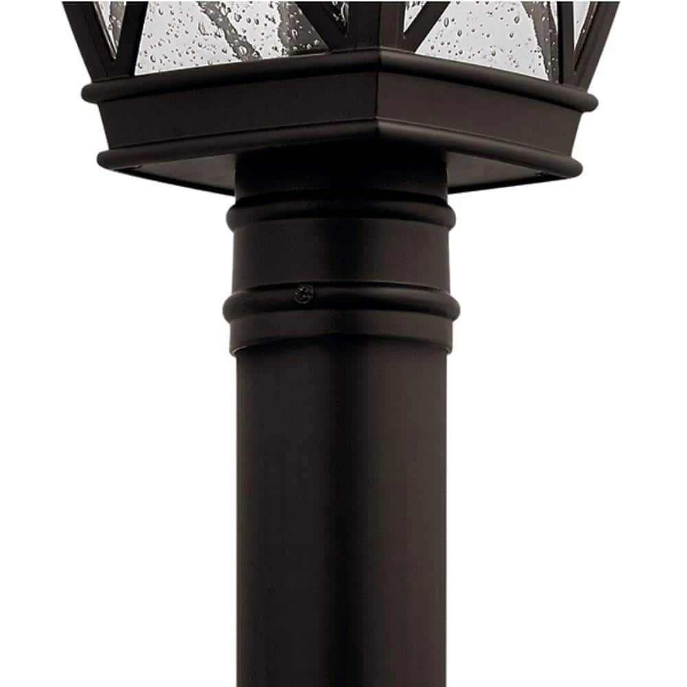 Add elegant lighting to your outdoor space with the KICHLER Tangier 1-Light Olde Bronze Post Light. The traditional crisscross design and intricate detailing of this post light is sure to accentuate the look of your outdoor decor. This post light is made from premium quality aluminum to ensure long-lasting use. The clear seeded glass shade allows for optimum illumination, making this post an ideal choice for your entryway, walkway or driveway.
