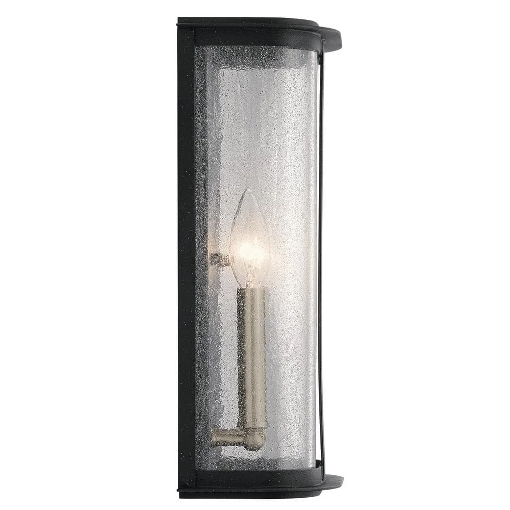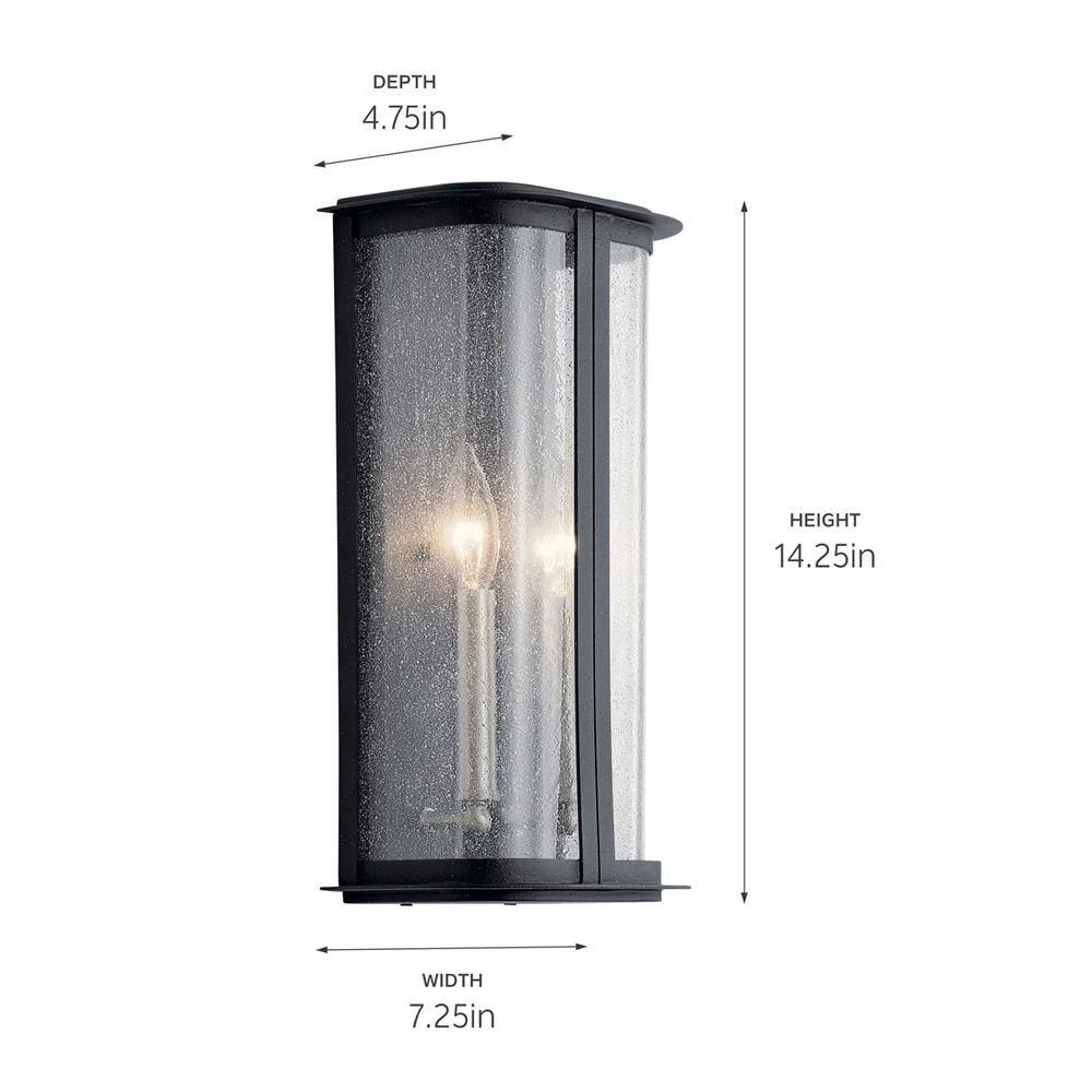 The Timmin collection lights your home’s exterior in timeless style. Mixing classic and modern elements, the collection exudes a quiet sophistication. Its curved shape comes from contemporary bureaus, and its glass is seeded, lighting your home in soft elegance. Instantly add sophistication with the Timmin 14 in. 2-light wall light. Its curved shape and elegant Distressed Black finish make it unique, while its Clear Seeded Glass adds texture and dimension. As the light shines through, the bulbs you choose play a role in this stylish display.
