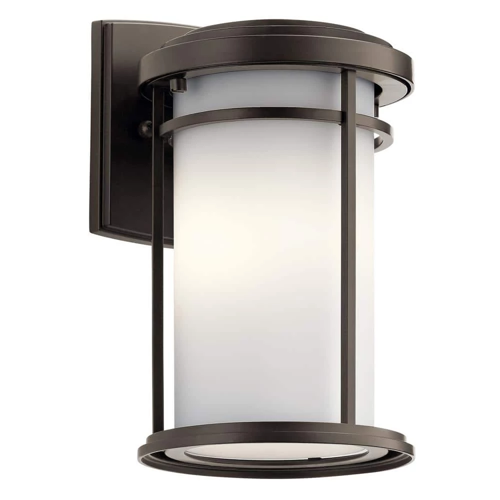 Enhance the visual appeal of your space with the Kichler Toman 10.25 in. 1-Light Olde Bronze Outdoor Wall Light. Featuring satin etched glass diffuser, this wall light adds a radiant glow to your space. Its superior quality aluminum construction ensures durability and minimized maintenance. This wall light from Kichler makes for an ideal lighting option to brighten up your entryway, patio, porch, and more.