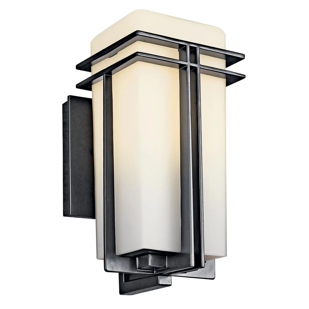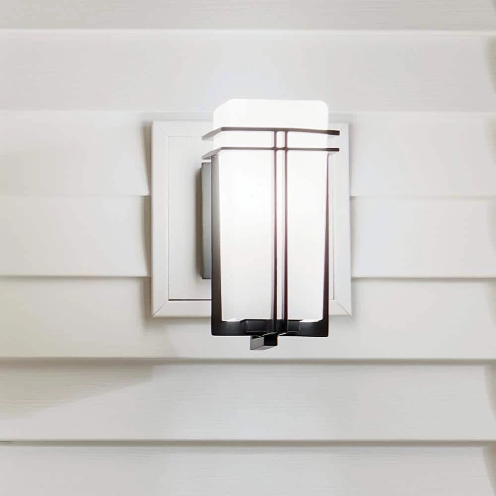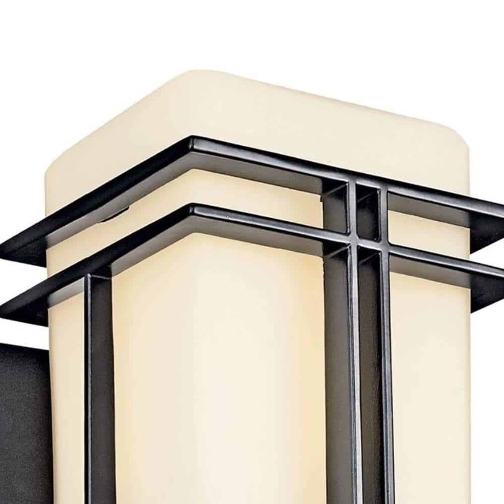 Gently illuminate and beautify your outdoor space with the KICHLER Tremillo 11.75 in. 1-Light Black Outdoor Wall Light. It features a satin etched cased opal glass shade fitted to a durable metal frame. The sleek black finish of the frame contrasts well with the subtle hues of the lampshade, creating an appealing look.