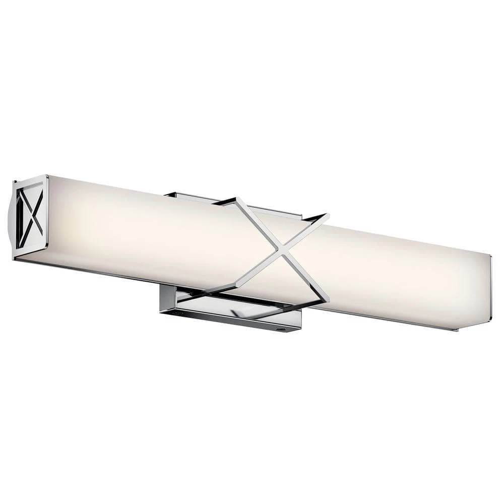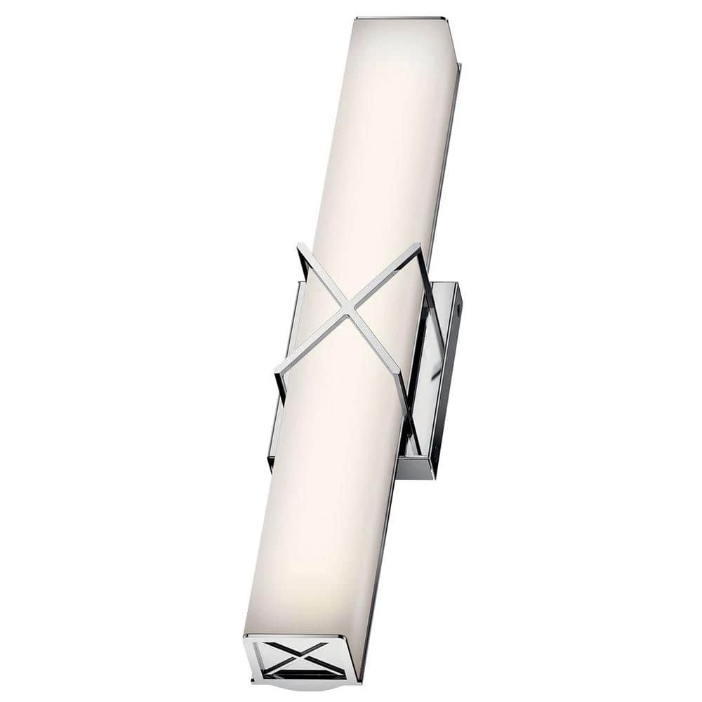 The KICHLER Trinsic 22 in. LED Chrome Vanity Light with Satin Etched White Glass has a contemporary design that complements various styles of decor. This LED light consumes less energy and provides a soft, warm light. It has a dimmable feature that allows you to adjust the brightness of the light conveniently. You can install this vanity light vertically or horizontally thanks to its unique design. It is UL listed and safe for use in damp locations.