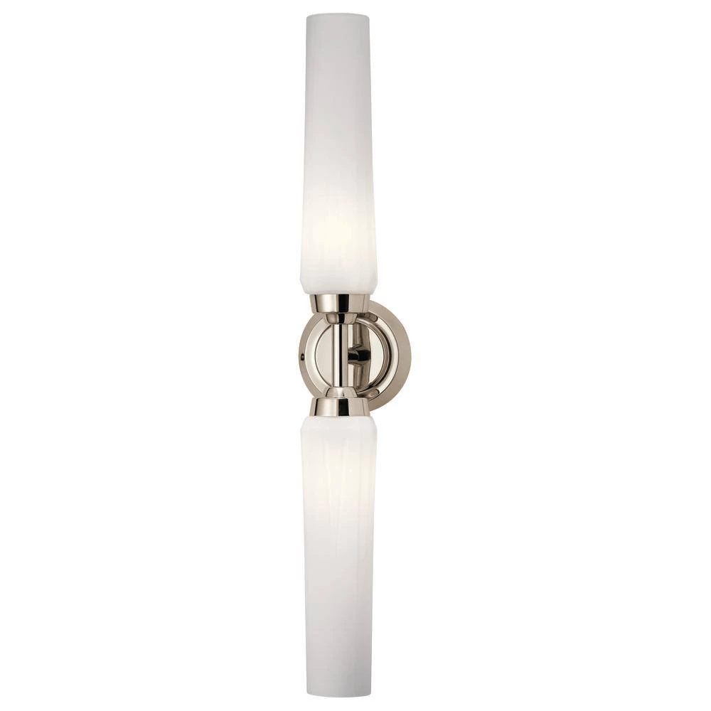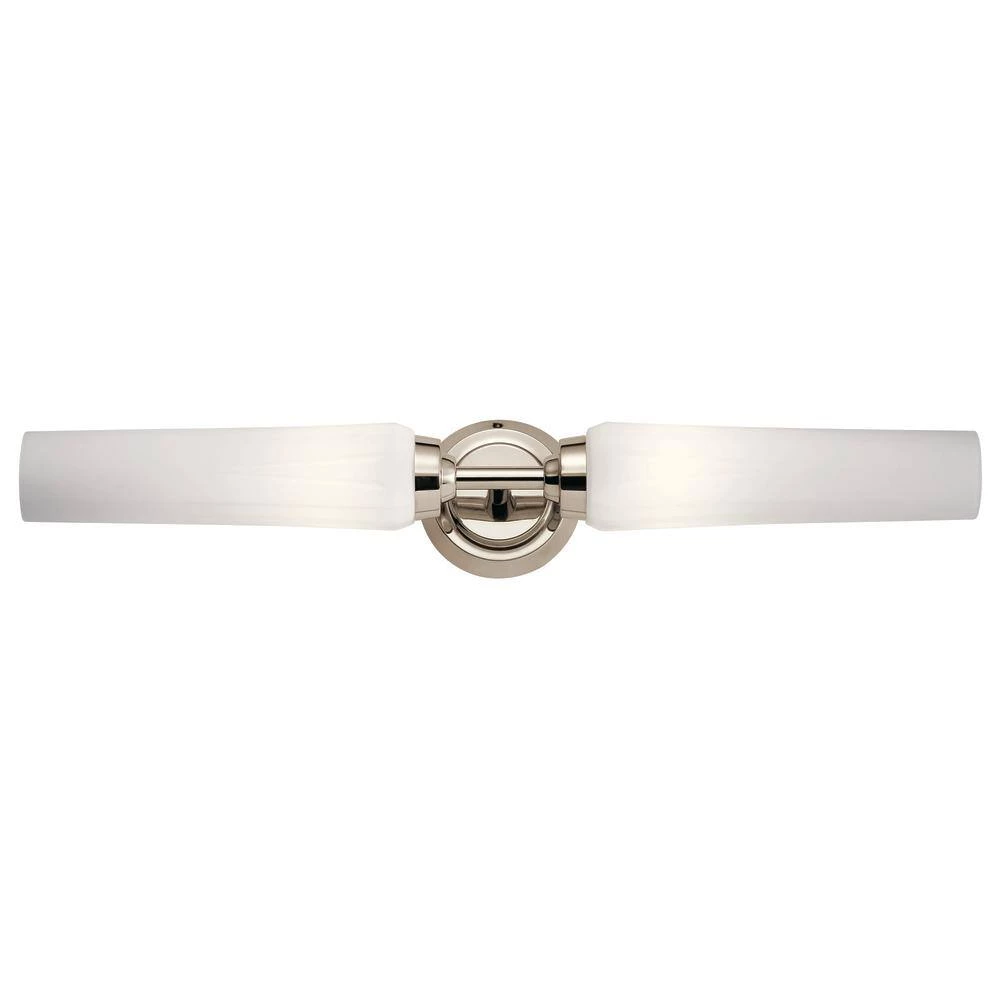 Long arms, curved features and a hint of the industrial make the Truby collection a contemporary design favorite. Inspired by American public works architecture of the 1920s and 30s, the collection borrows from the Streamline Moderne, Art Deco’s sleeker interpretation. The result is a refined lighting collection ideal for bath, living and kitchen spaces. The Truby 24.75 in. 2-light vanity light illuminates through aerodynamic-inspired arms made of Satin Etched Cased Opal Glass. With a Polished Nickel finish, this fixture pulls from yesterday to enlighten today.