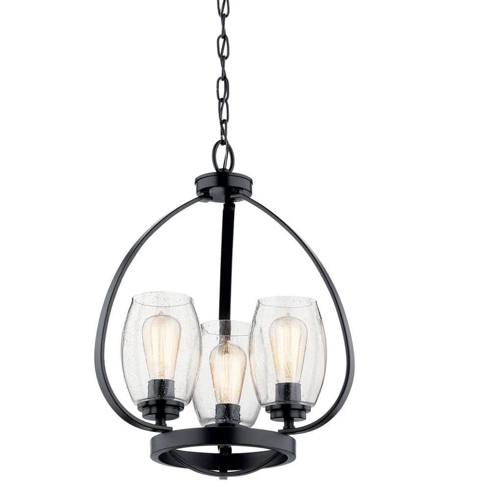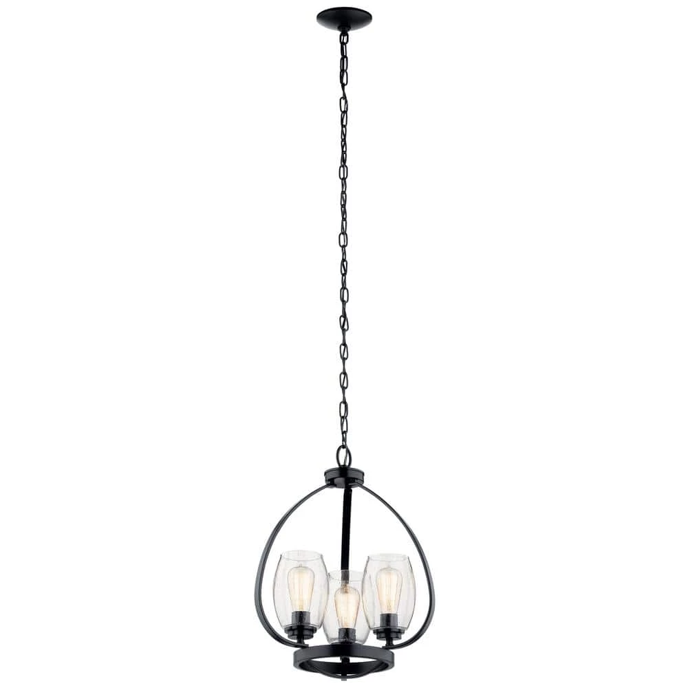 The Kichler Tuscany 21 in. 3-Light Black Mini Chandelier features a rustic iron design that complements any lodge- or country-style decor. It comes with clear seeded glass diffusers that provide soft, ambient lighting for the room. The chandelier has a robust steel frame that offers excellent support and requires low maintenance. This unique, exquisite chandelier from Kichler makes for an ideal choice to light up your living room or dining space.