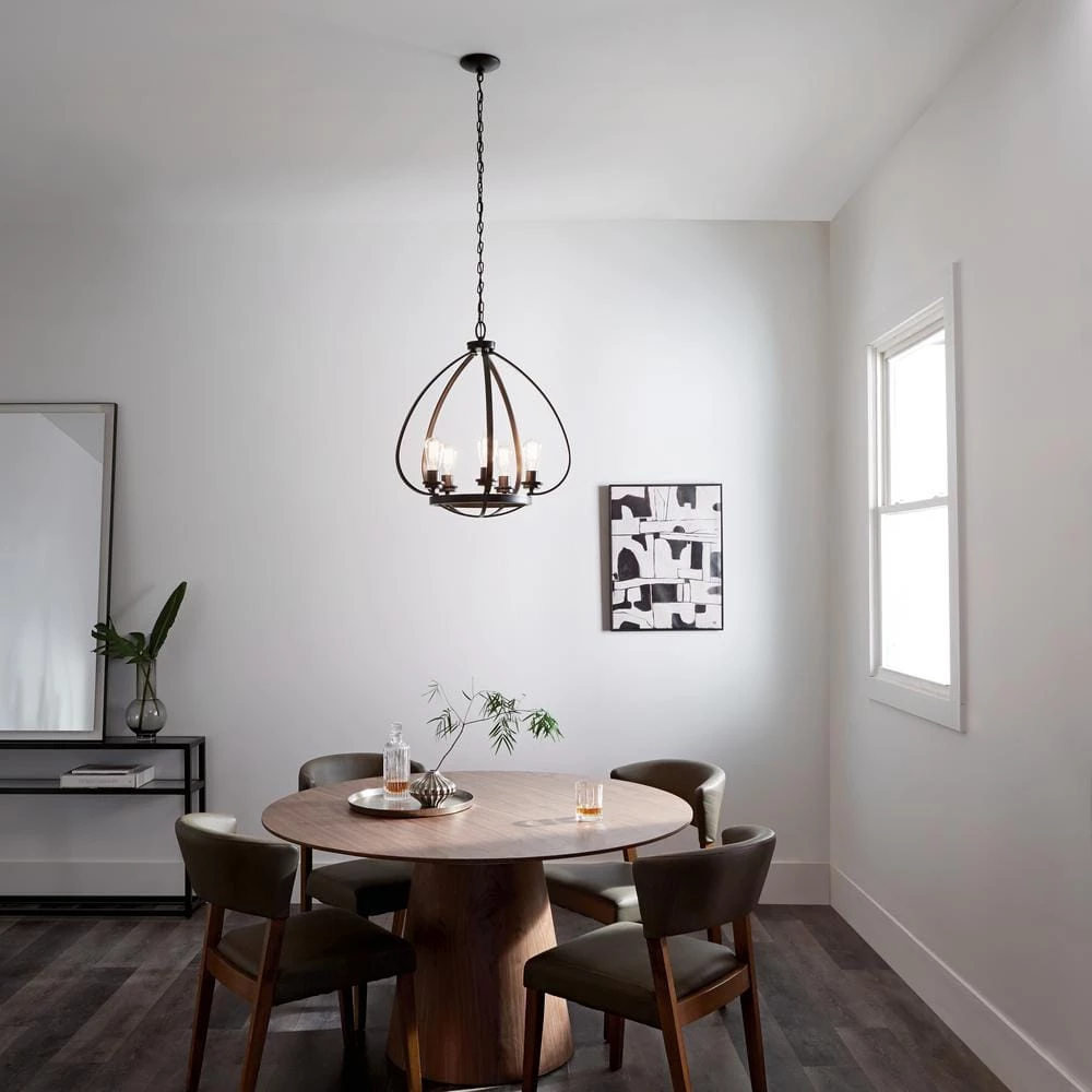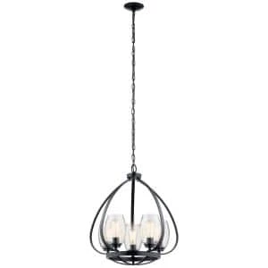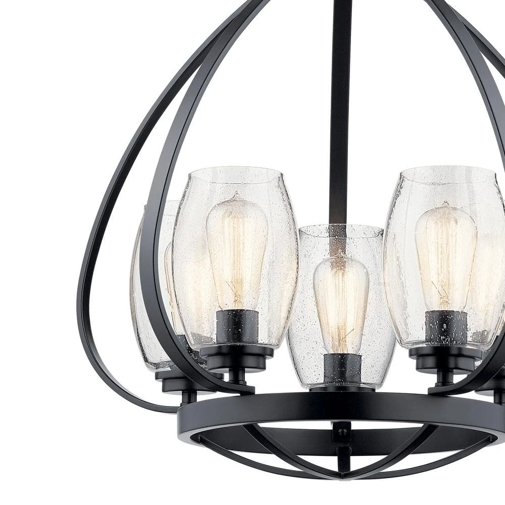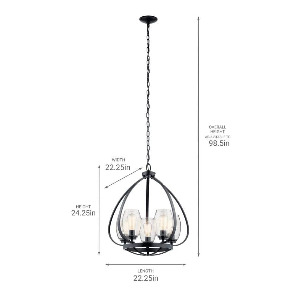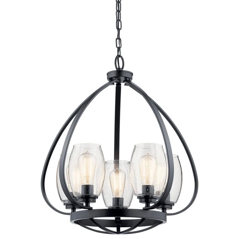 The Kichler Tuscany 24 in. 5-Light Black Mini Chandelier features a rustic iron design that complements any lodge- or country-style decor. It comes with clear seeded glass diffusers that provide soft, ambient lighting for the room. The chandelier has a robust steel frame that offers excellent support and requires low maintenance. This unique, exquisite chandelier from Kichler makes for an ideal choice to light up your living room or dining space.