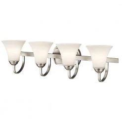Joelson 4-Light Brushed Nickel Bathroom Vanity Light with Satin Etched Cased Opal Glass by KICHLER