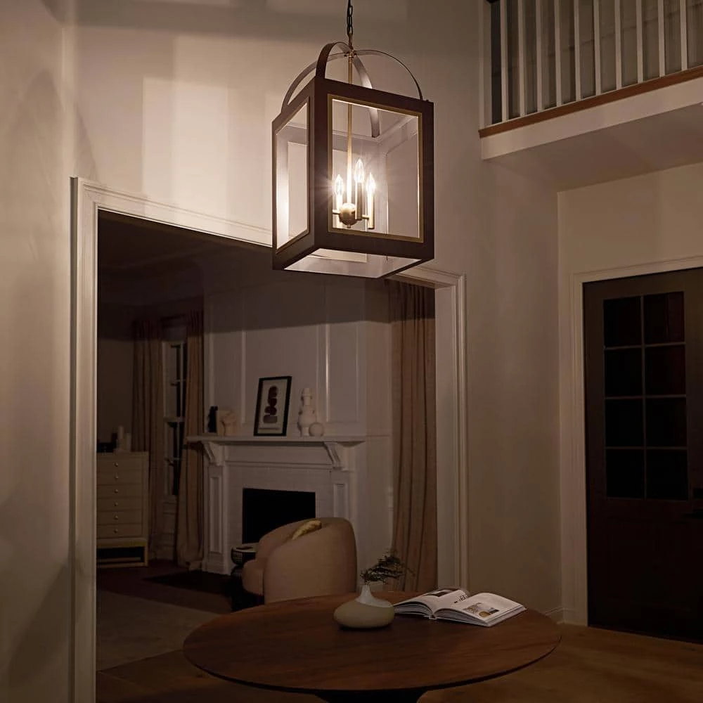 Enliven your decor with the KICHLER Vath 16 in. 4-Light Black and Natural Brass Foyer Pendant Light. It features a unique design that accentuates the visual appeal of industrial-style decor. The pendant is constructed from steel that offers strength and durability. This elegant pendant light from KICHLER makes for an ideal lighting solution to light up your living space.