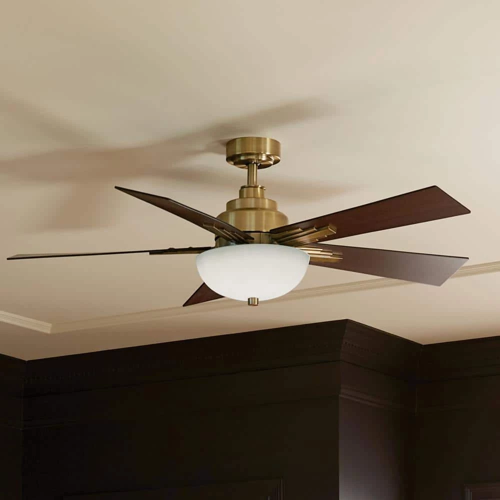 Geometry and symmetry come to life in the Vinea collection. A refined, sophisticated fan inspired by Art Deco’s familiar motifs, Vinea does more than elevate a space – it transforms it. Featuring the beloved stacked shapes iconic to Art Deco style, the Vinea ceiling fan gives you luxurious comfort in a refined retro style. Its glamorous brushed natural brass finish with its reversible black and walnut blades confirms its elegance. A gorgeous Etched Cased Opal glass diffuser encases its integrated LED light.