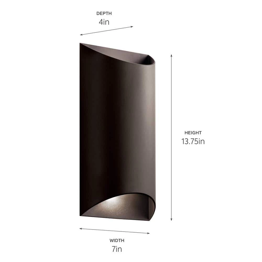 The KICHLER Wesley 14 in. LED Outdoor 2-Light Wall Light has integrated LED lamp that provides optimum illumination and consumes less energy. You can adjust the level of brightness according to your requirements. Its frame is made of aluminum to ensure long-term use. This ETL listed outdoor light is suitable for illuminating entryways, garage doorways, patios, porches and more.
